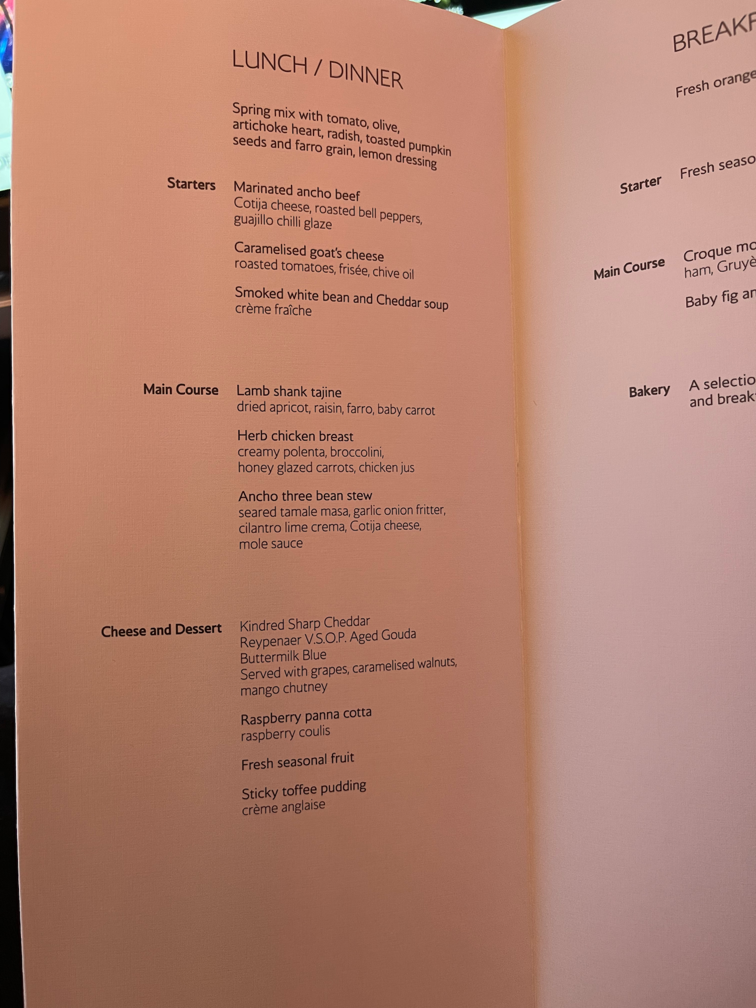 Menus and platings from a recent jump between LHR to DEN, and the return leg a week later. The gentlemen looking after my side of the J cabin outbound was wonderfully heavy-handed on the G&T pours - God speed that man. Overall service was very pleasant both ways - slight hiccup in that the veg on the return chicken dish was rock hard, but otherwise all reasonably tasty. And a shoutout to both crews who had to handle all manner of faffery from Heathrow ground operations. Delays, broken jetties, stressed passengers trying to make connections - they did everything they could to keep everyone calm and comfortable, and did it gracefully. Fair play to them all.