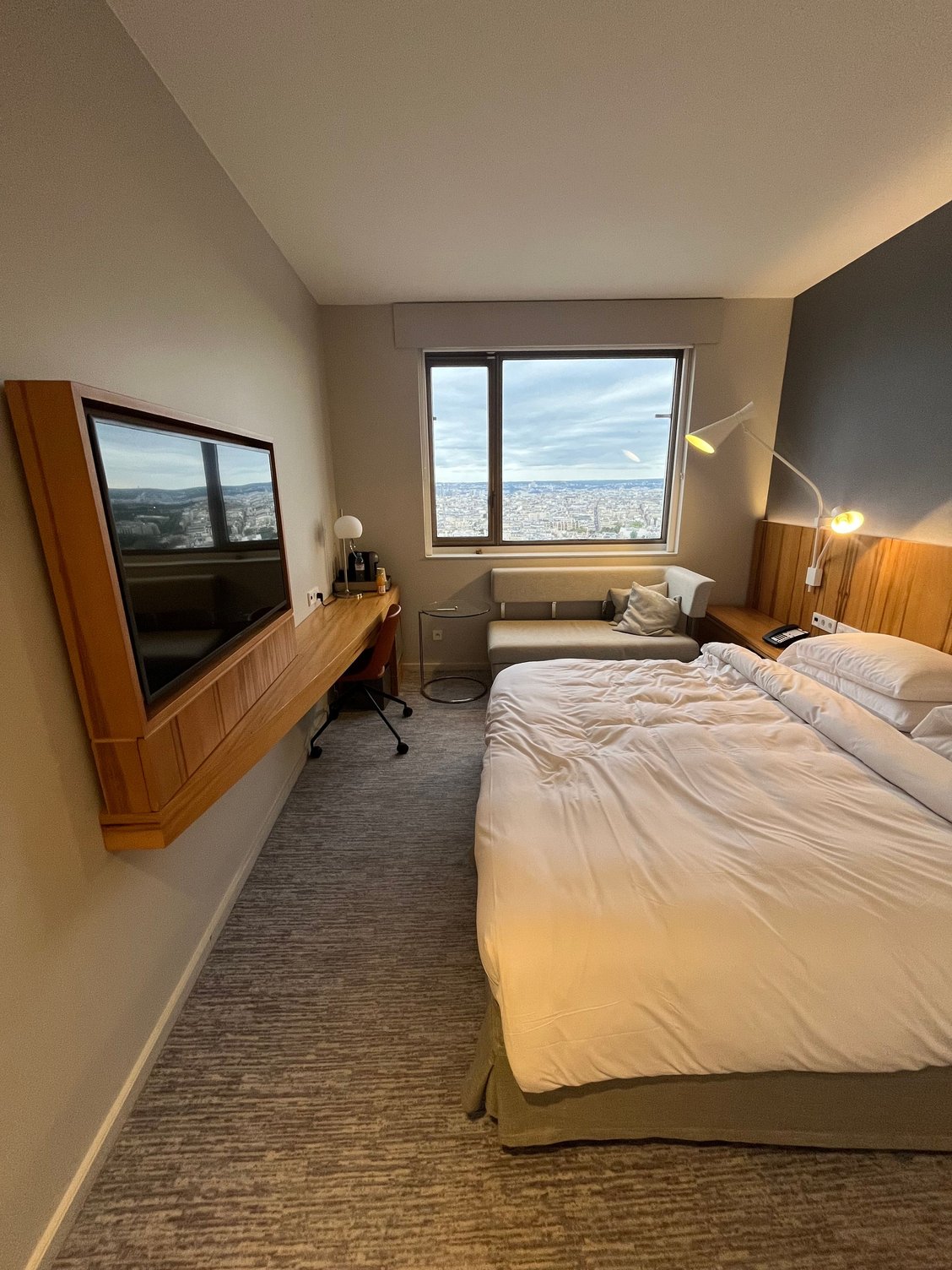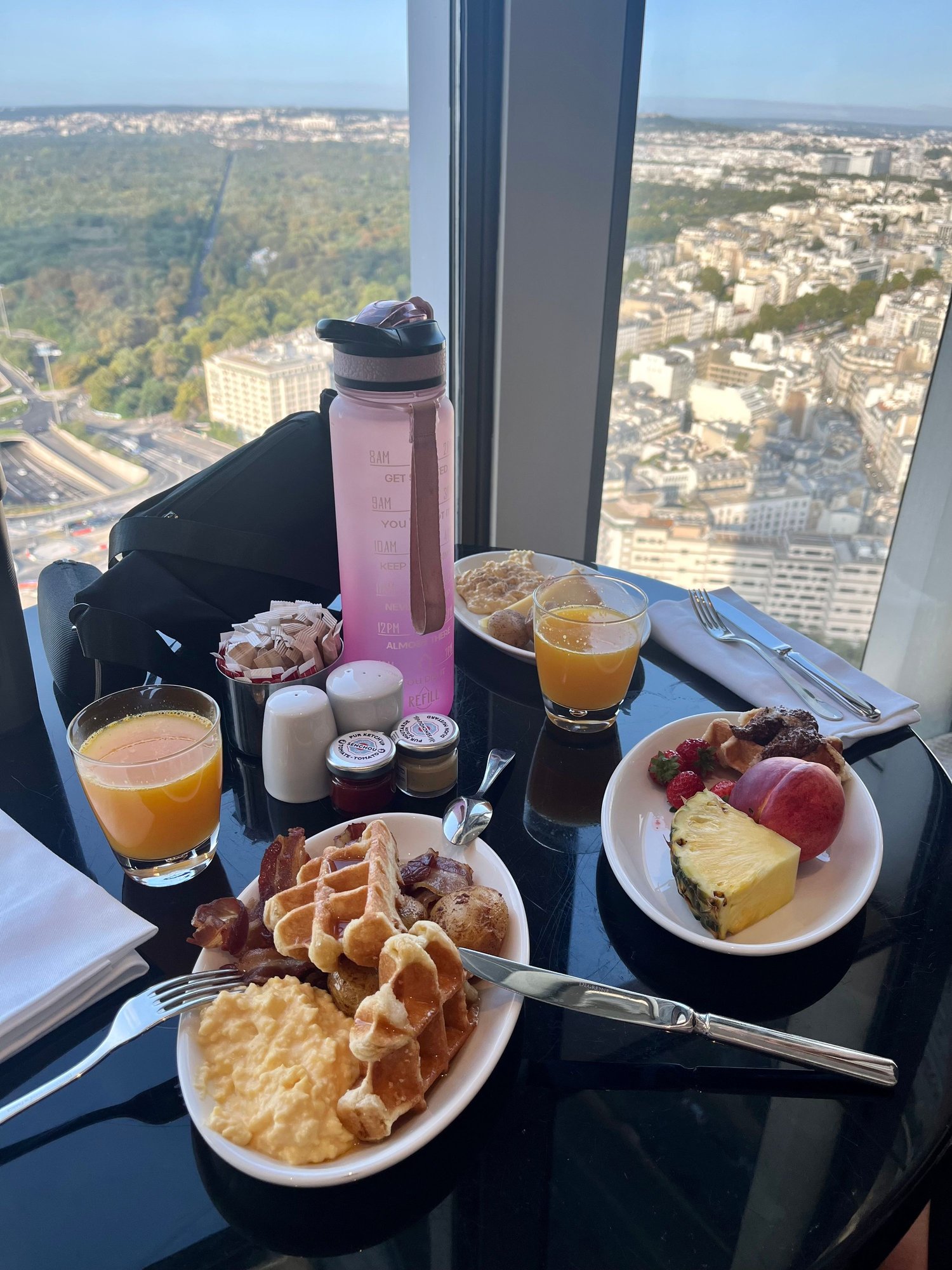 I booked the stay using cash and applied a club access award. I initially booked a 'King Bed Room with Eiffel Tower View' and was upgraded to 'King Bed Room with Eiffel Tower View Deluxe'. I'm only a Discoverist and was very grateful for the upgrade. Our room was on the 29th floor and had incredible views of the the Eiffel Tower and of Paris. We had free breakfast in the lounge every morning. The food that the lounge offered was great, lots of variety and the offerings changed throughout the day. The lounge also offered free soft drinks, coffee, water, beer and wine. Wine is offered from 6PM-9PM.
