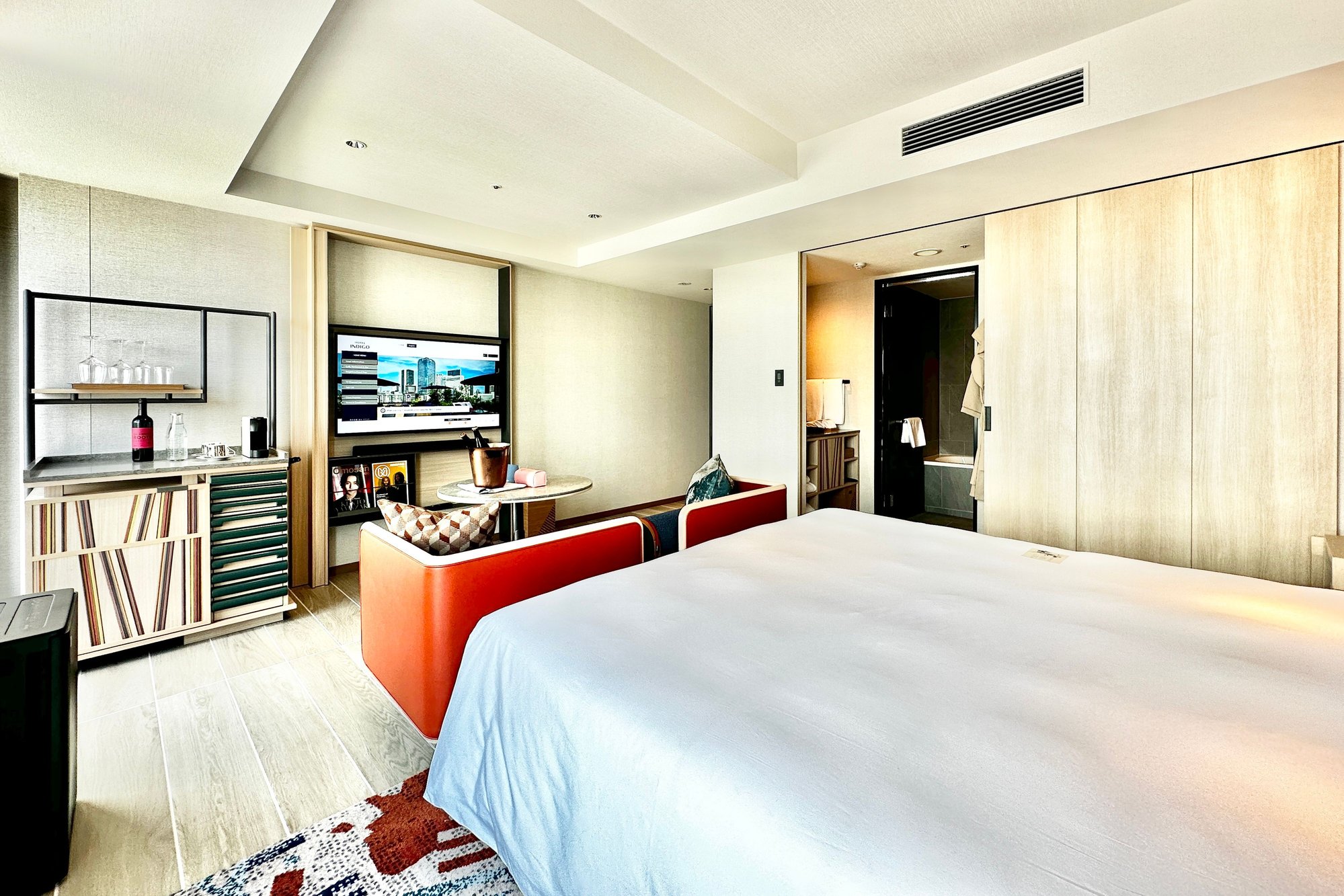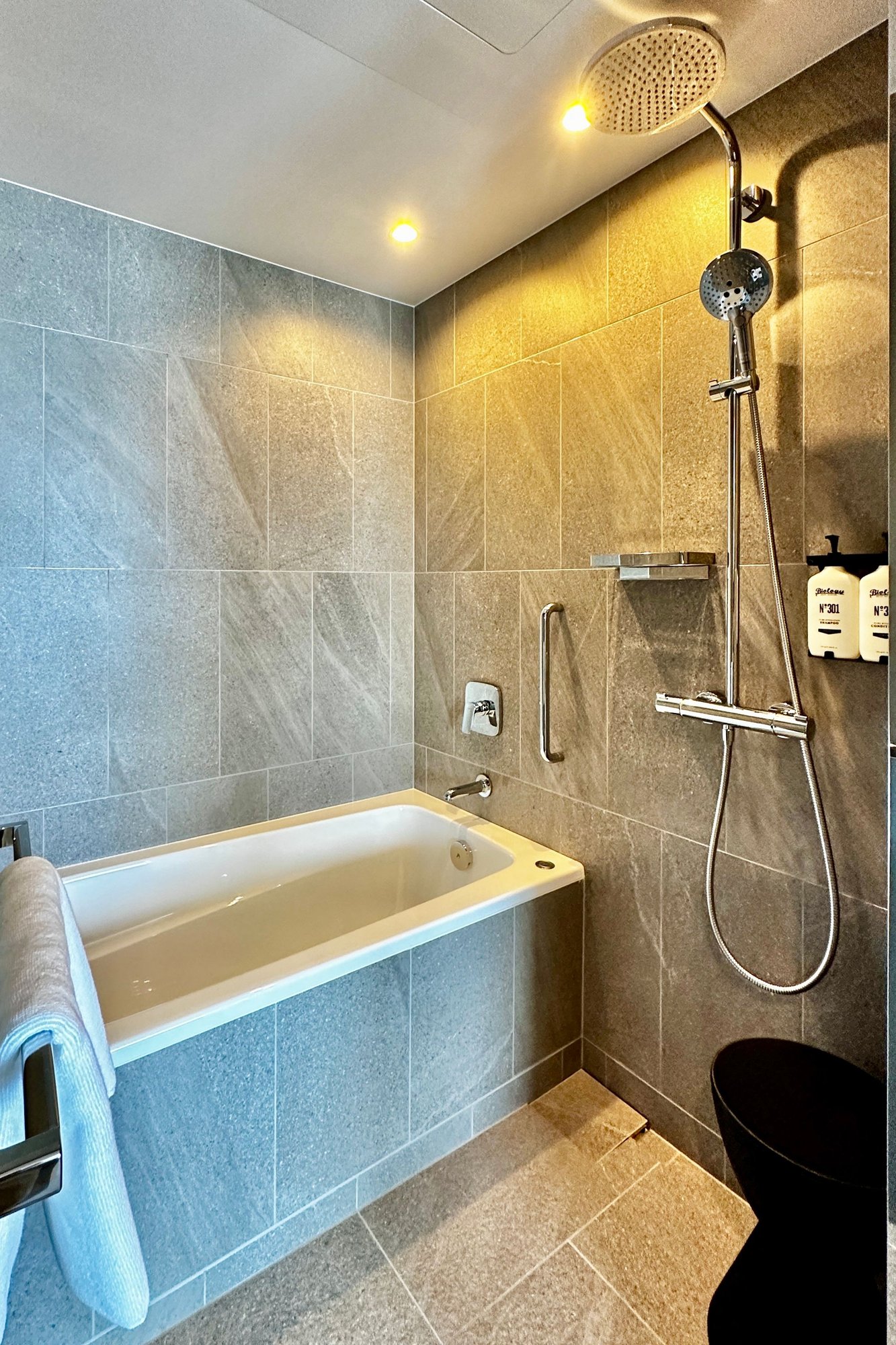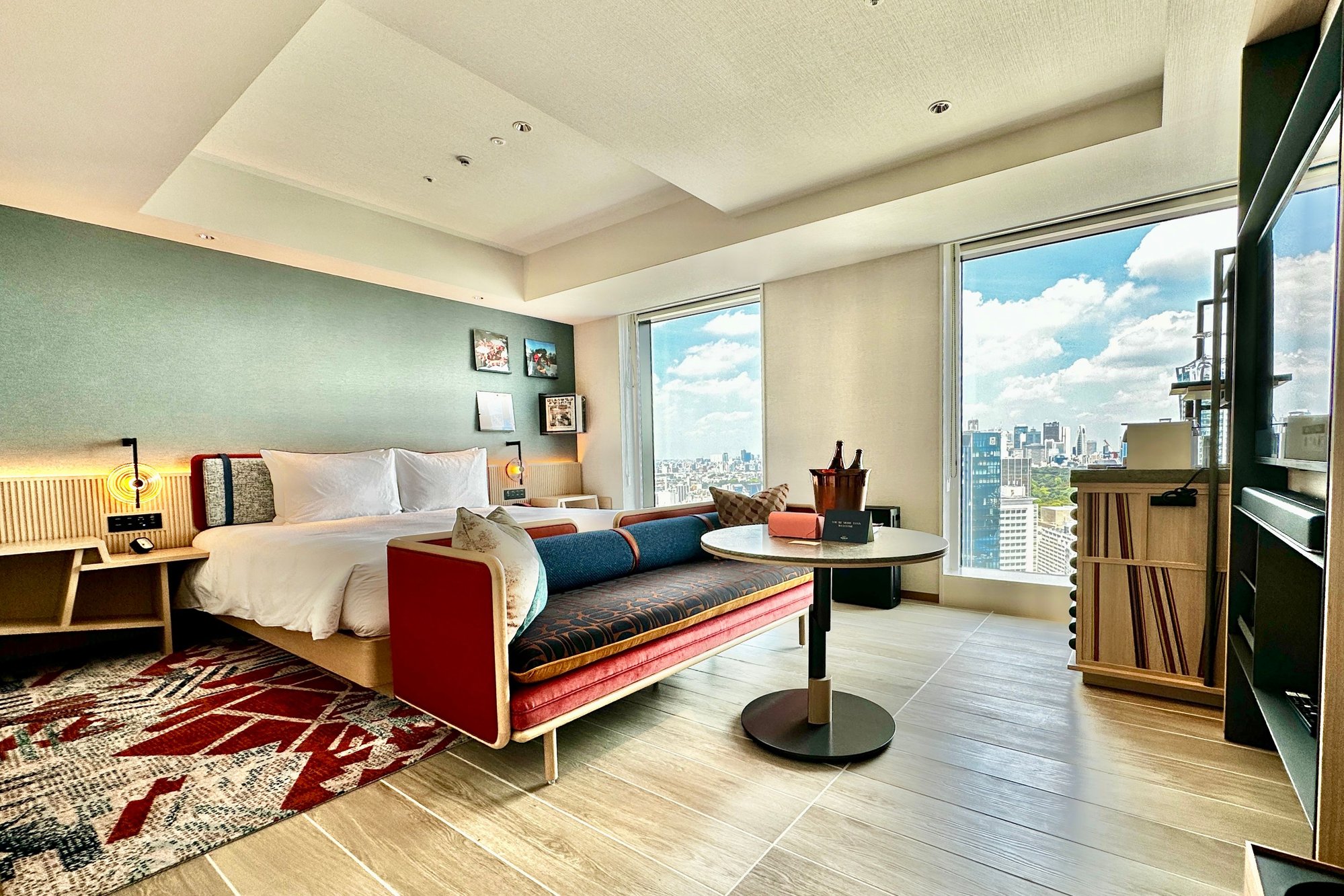 30 SQM. This is the most spacious room in the hotel. Two rooms on each floor. Two single bed rooms are only available below 23rd floor. High floors have one king bed only. The most expensive room category of this hotel is the Scramble View Room, but it is only 25sqm, therefore the hotel could not prepare upgrade pass. One king bed, bathroom with sunken bathtub. 49" SONY 4K LCD TV with Bluetooth sound system, Nespresso and sofa set. Toiletries are Biology provided by push dispenser.