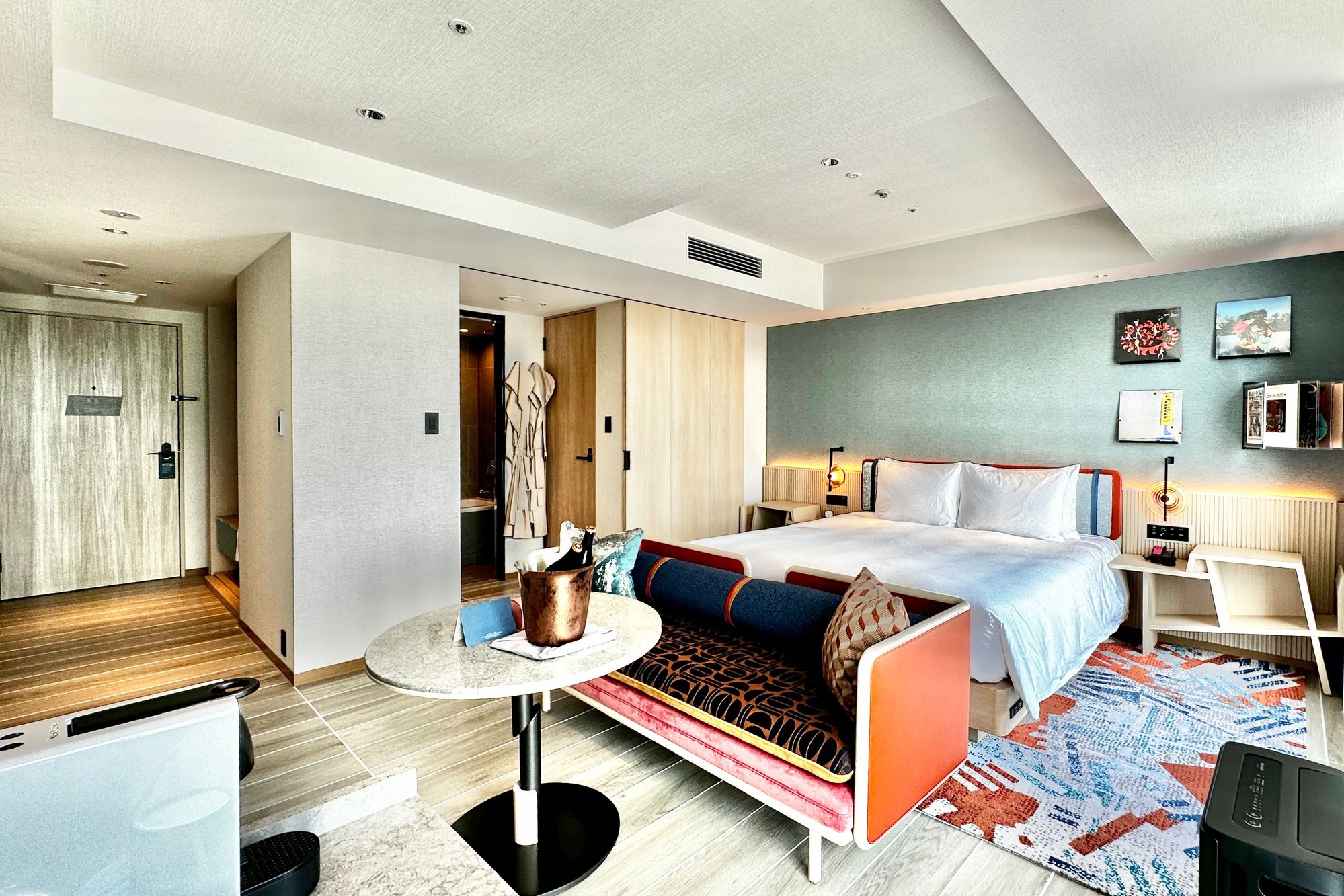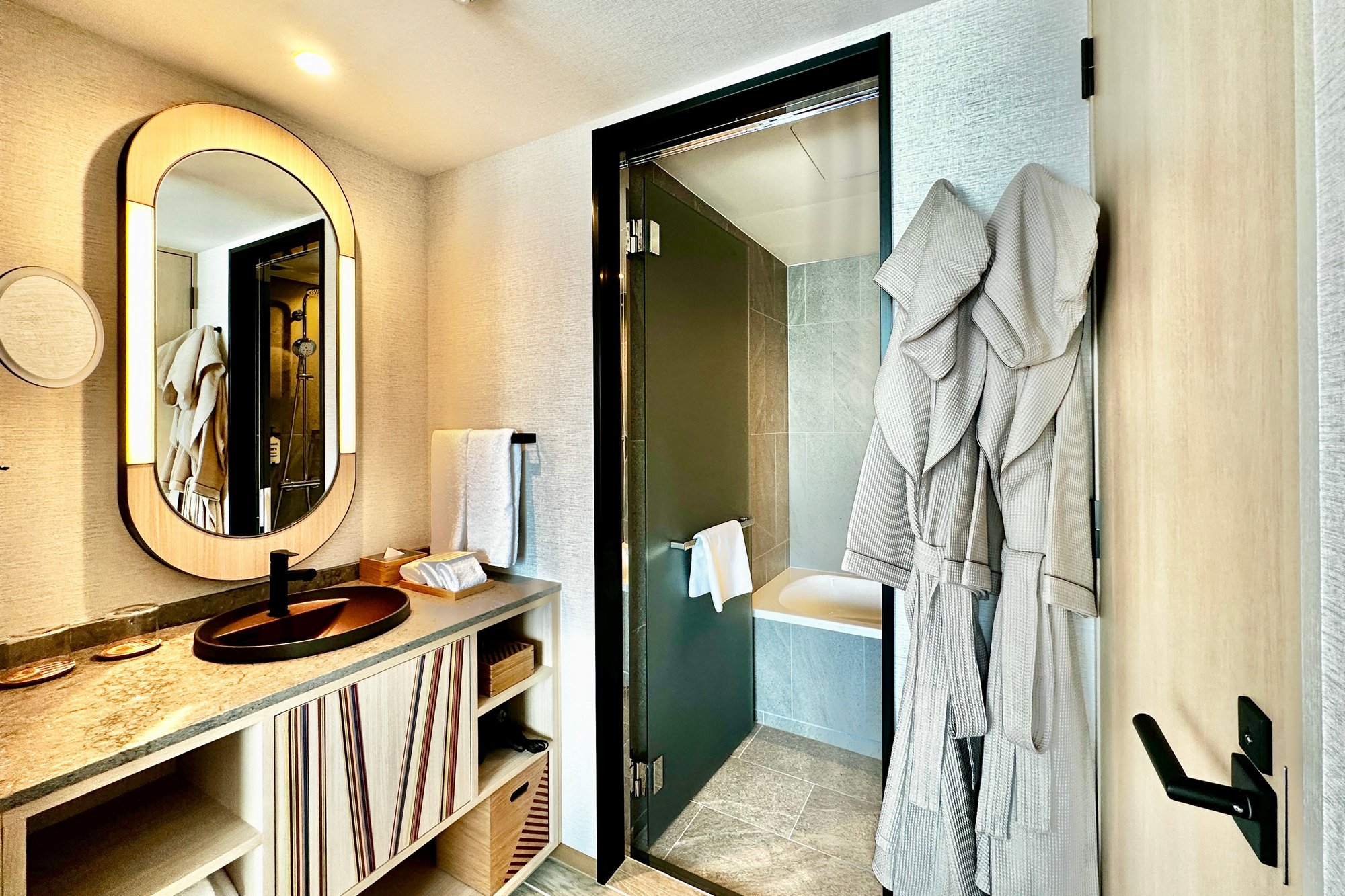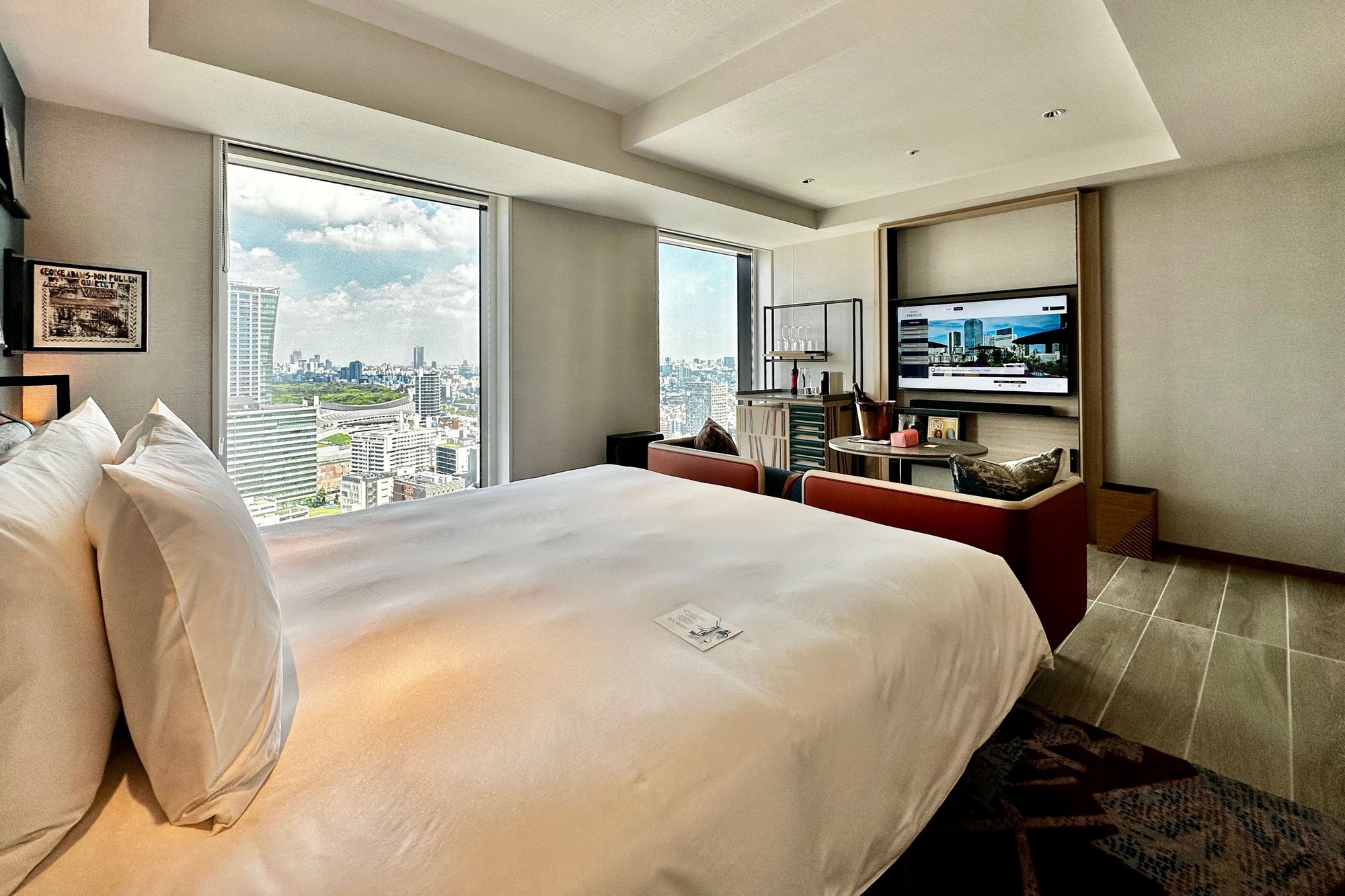30 SQM. This is the most spacious room in the hotel. Two rooms on each floor. Two single bed rooms are only available below 23rd floor. High floors have one king bed only. The most expensive room category of this hotel is the Scramble View Room, but it is only 25sqm, therefore the hotel could not prepare upgrade pass. One king bed, bathroom with sunken bathtub. 49" SONY 4K LCD TV with Bluetooth sound system, Nespresso and sofa set. Toiletries are Biology provided by push dispenser.