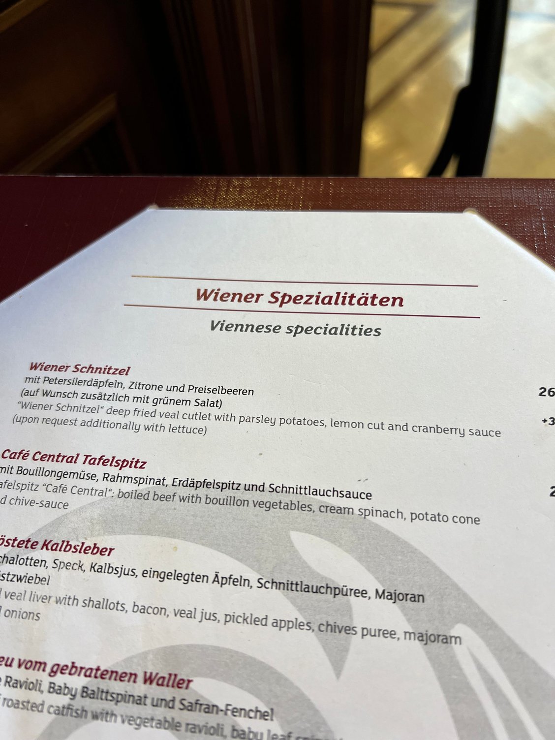 I then walked back into Old Town to visit Cafe Central - though, I had to wait in line outside with the bees, my Schokohupf mit Schlagobers und Vanileeis was divine and delectable - one of the best desserts I have had - warm and luscious! If only it has been on the Wiener specialities side of the menu...