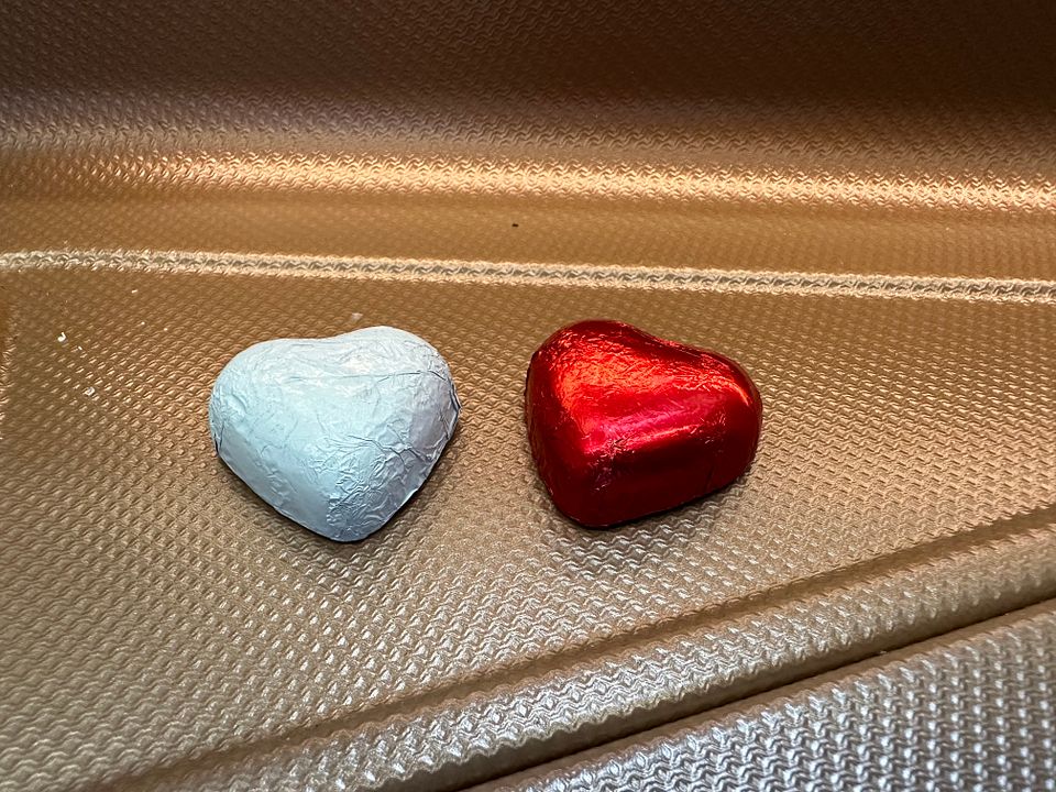 I flew on National Day and therefore special decorations at gate and check-in area. Free white and red chocolate hearts were passed out during boarding.