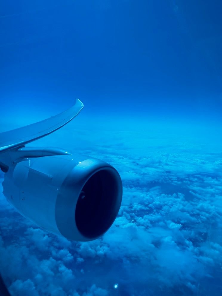Another reason I prefer the 77W over the Dreamliners is that on the Dreamliners, UA FAs tend to set the windows on the darkest setting, then lock the window controls so you can't adjust them. You can still see out, but it sucks for picture-taking. The 77Ws still have the old fashioned pull-down shades. 😎 Case in point: