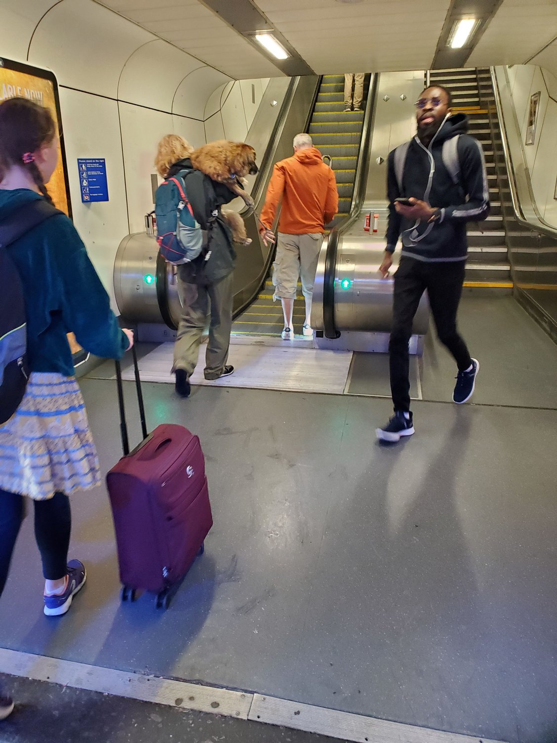 This baby is just like my sister's dog - a veritable scaredycat. Will not get on the escalator lol!