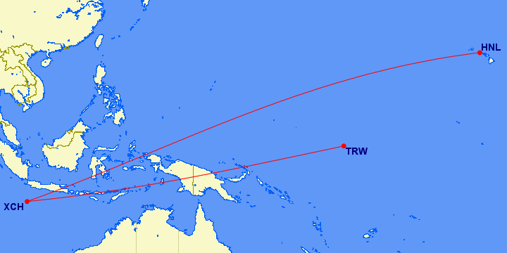 Are you sure about the Christmas Island stop? XCH-HNL seems like quite a stretch for a 727.