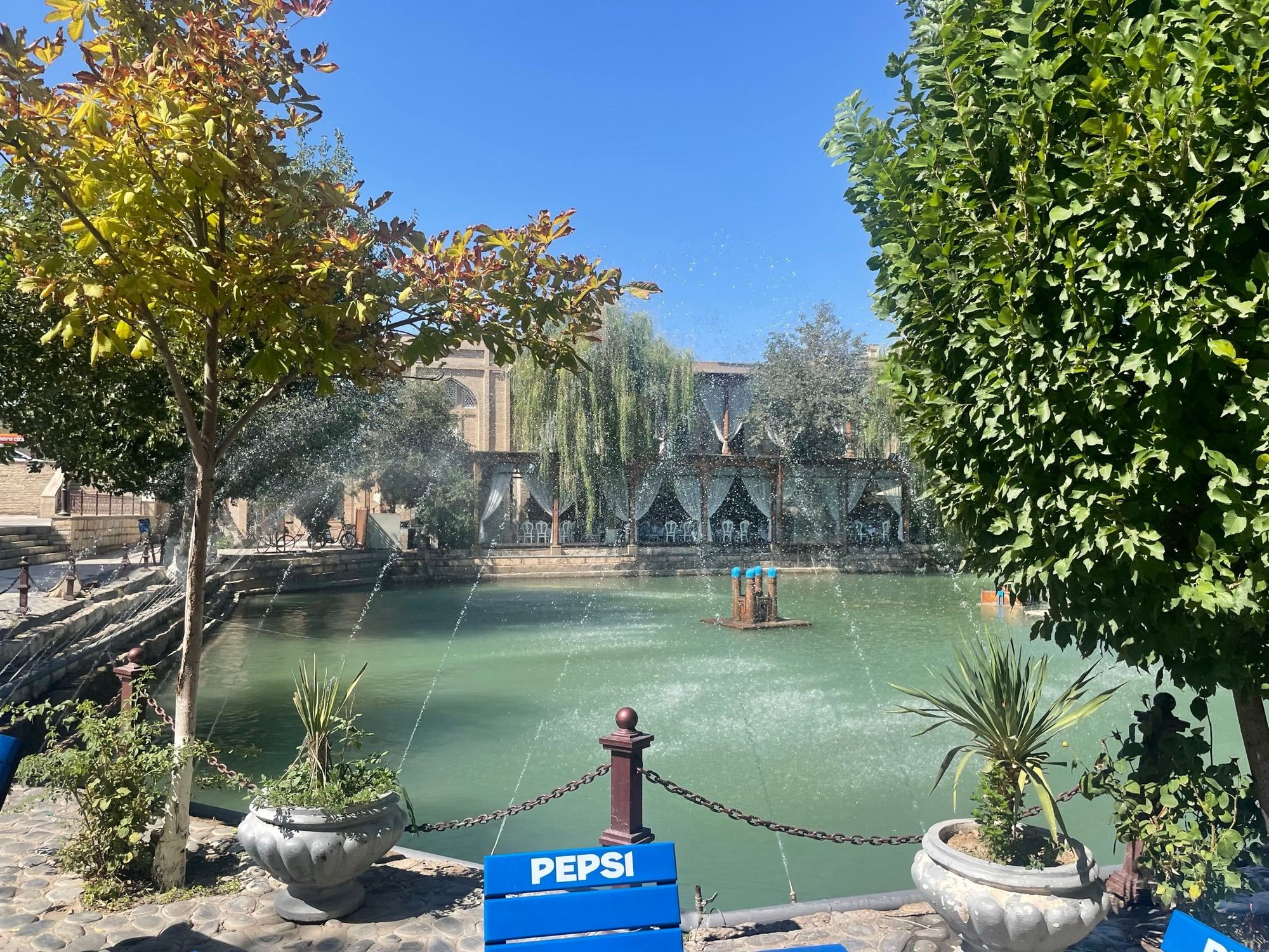 With the extreme heat we began looking for somewhere cool to sit and relax fairly early on in the day. That place ended up being Labi Hovuz, a restaurant on Lyab-i Hauz. Lyab-i Hauz is one of the few remaining hauz pools in the world and is worth visiting if you are in the area. There is also a cultural dance show next to the lake that occurs in the evening. I would have gone had I known it existed in advance, but the little I saw from outside looked good.