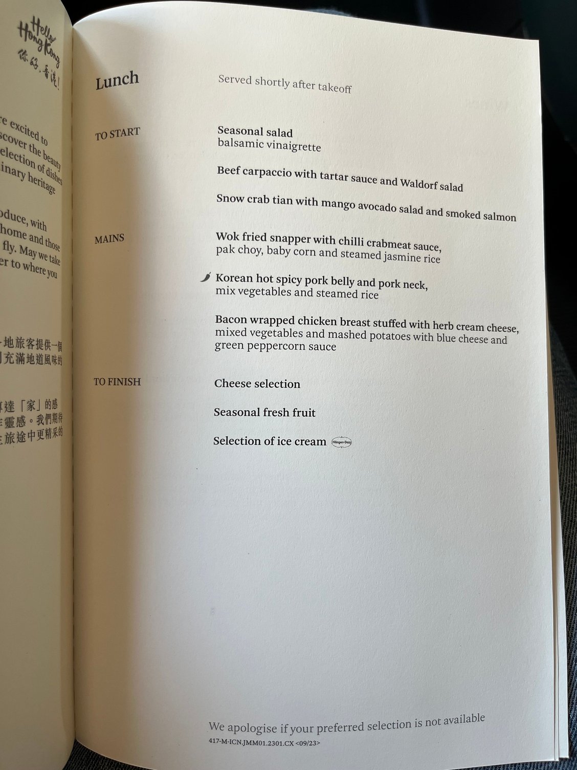 FlyerTalk Forums - View Single Post - CX J Menu 2023