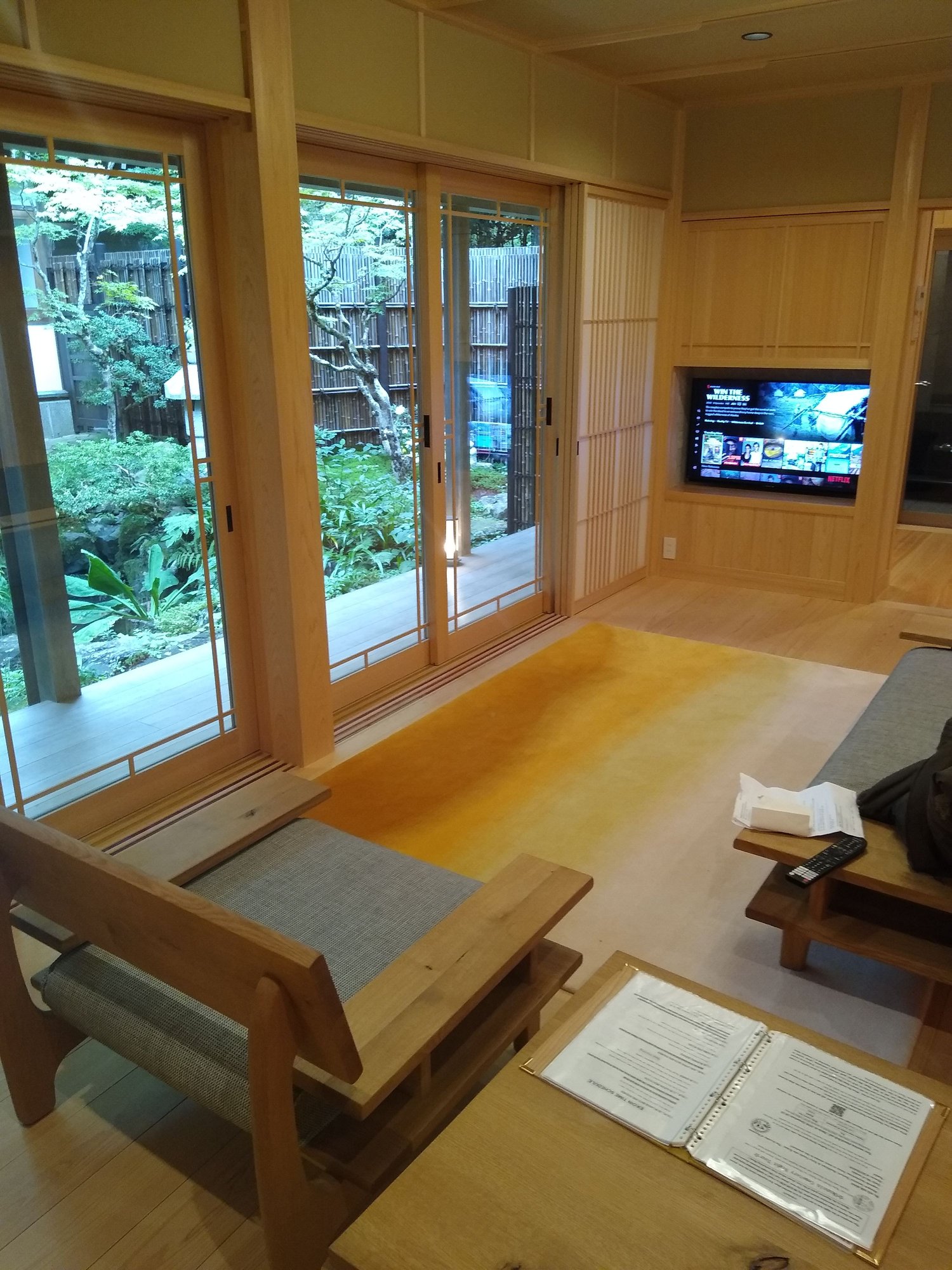 Ekoin is a genuine Buddhist temple that makes its revenue by effectively running a hotel as part of its facility. Unlike other temple lodgings, it has one luxurious room where we stayed to (somewhat) experience temple life. I say 'somewhat' because this sort of thing doesn't really go with Buddhism. Although the room and most of the service is at, or is close to, luxury levels, it still isn't a luxury hotel. There are several reasons for this. One is that meals are served (in the room) at fixed times. Checkout iw 10am. Dinner is at 5:30pm (!) and breakfast is at 8am. Another is that all food is not just vegetarian, but strictly vegan. The vegan dinner is beautifully presented all at once as a lot of dishes. There is a candle burner for the one hot dish and there is hot soup, the rest (except for tea or coffee) are cold. I forgot to take photos of dinner, but here are some of the room; apologies in advance because I am not a photographer at KI-NRT's level.