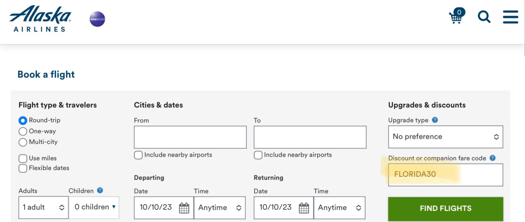 Got it. My landing page doesn't look like that. It has a box with tabs labeled "Book" et al, so that's what I used. But if I ignore that and instead click on the "Book" pull-down menu in the top banner, then "Flights", then I see what you showed.