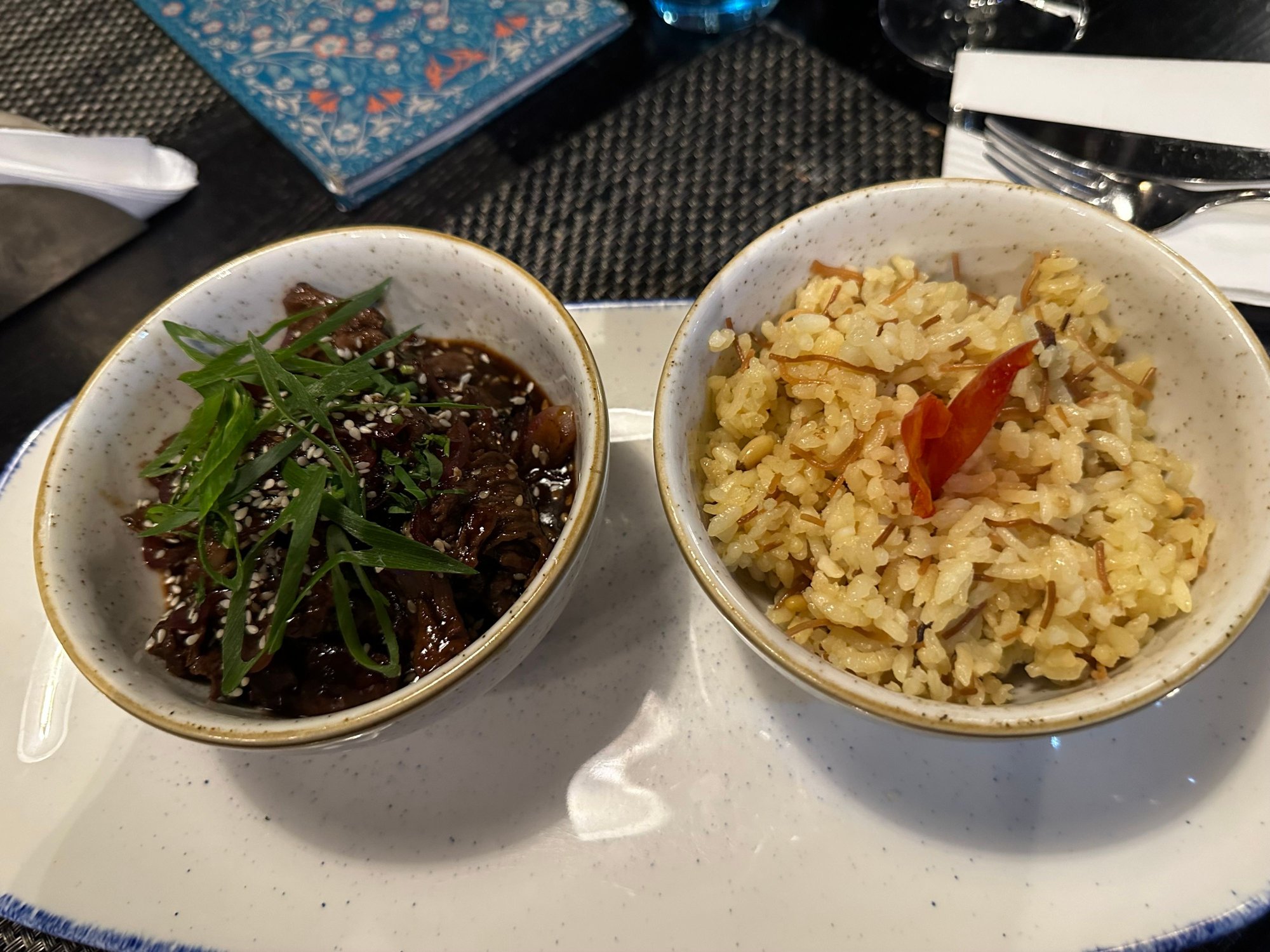 Now armed with a glass of local Sauvignon Blanc the second course has arrived, the beef and pomegranate with jasmine rice. This is a risk for me as I’m told its a very sweet dish but nothing ventured, nothing gained!