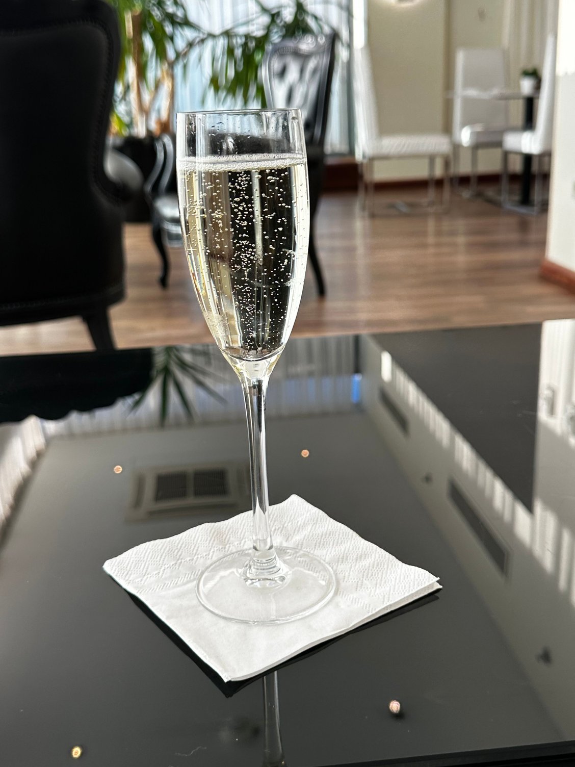 Work call completed and its time to head to the lounge. The now obligatory glass of fizz to commence proceedings lest I be chastised by my friend