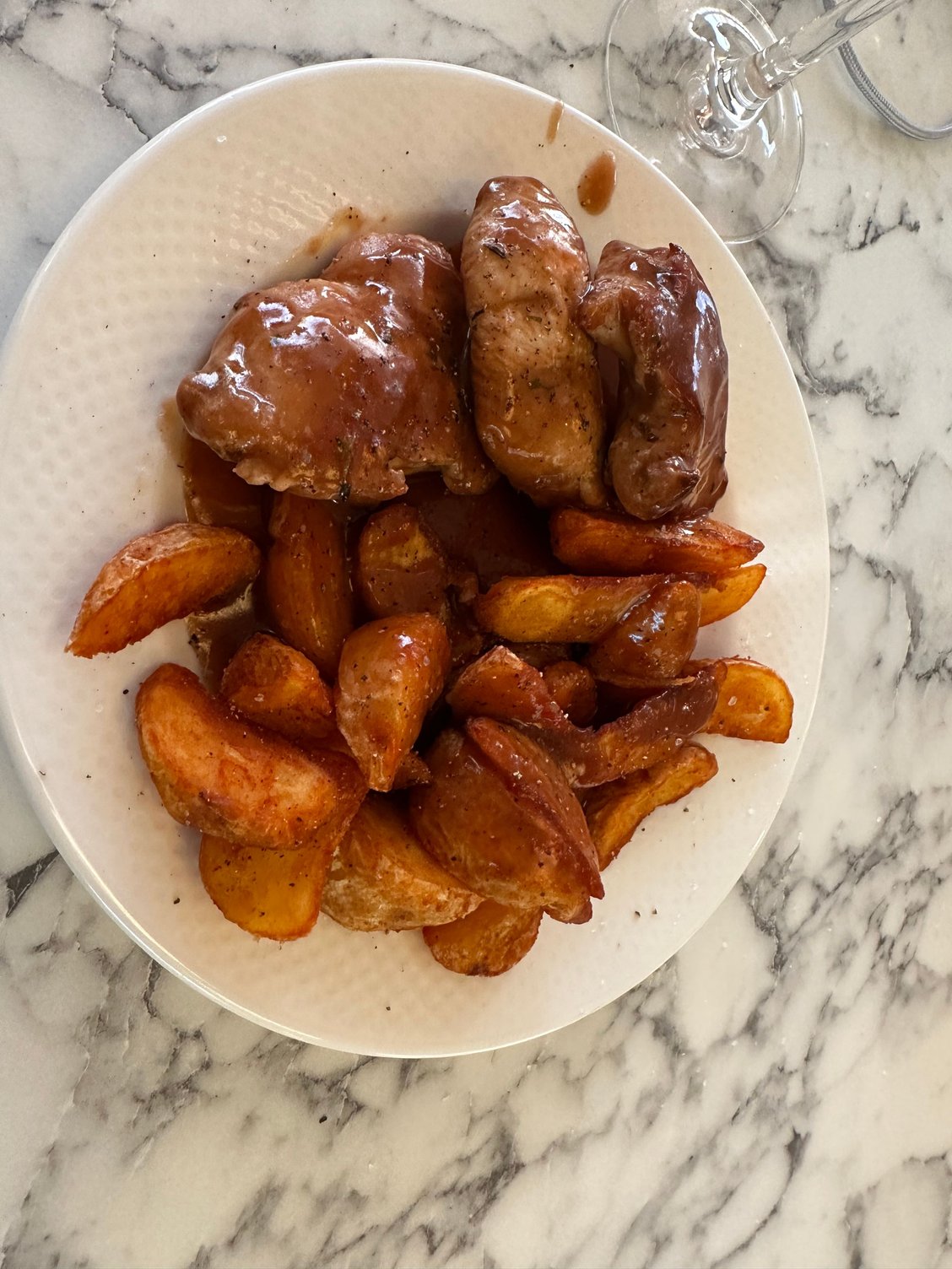 . The local rose went remarkably well with the turkey, probably as the sauce was on the sweeter side. The turkey and potatoes were exactly OK, greatly helped by a liberal application of salt and pepper.