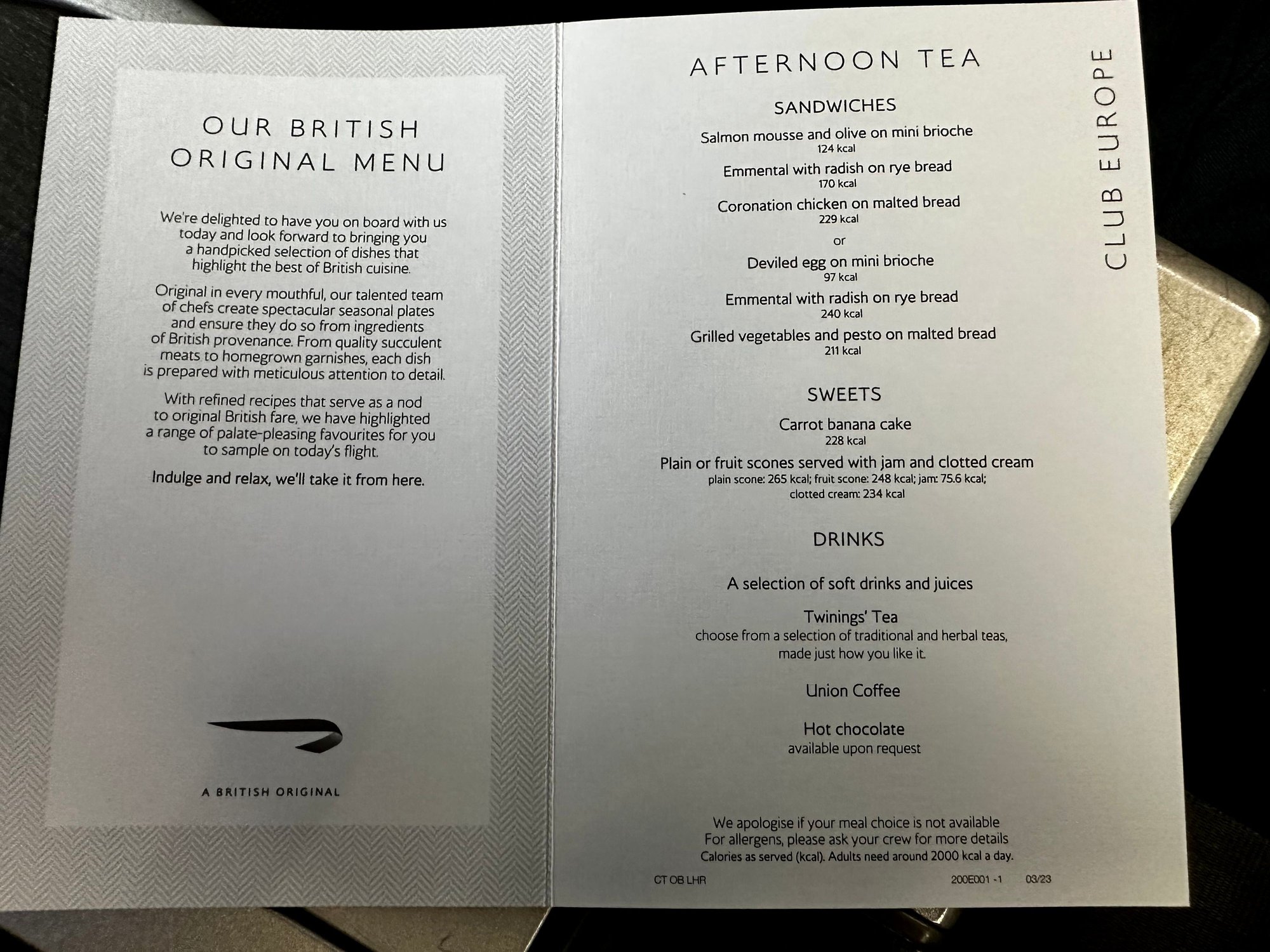 And the standard afternoon tea menu