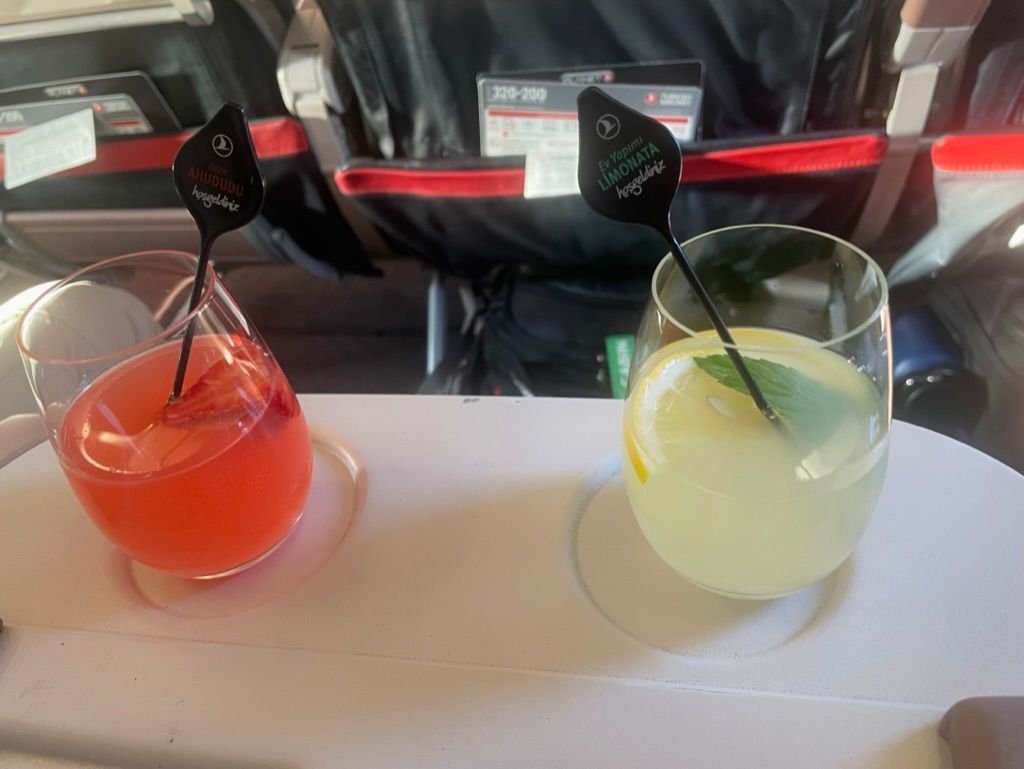 The cabin crew then brought around pre departure drinks (including their wonderful mint lemonade) and we took off after a bit of taxing. This route is extremely short with less than an hour spent in the air, but Turkish still serves a full meal in business.