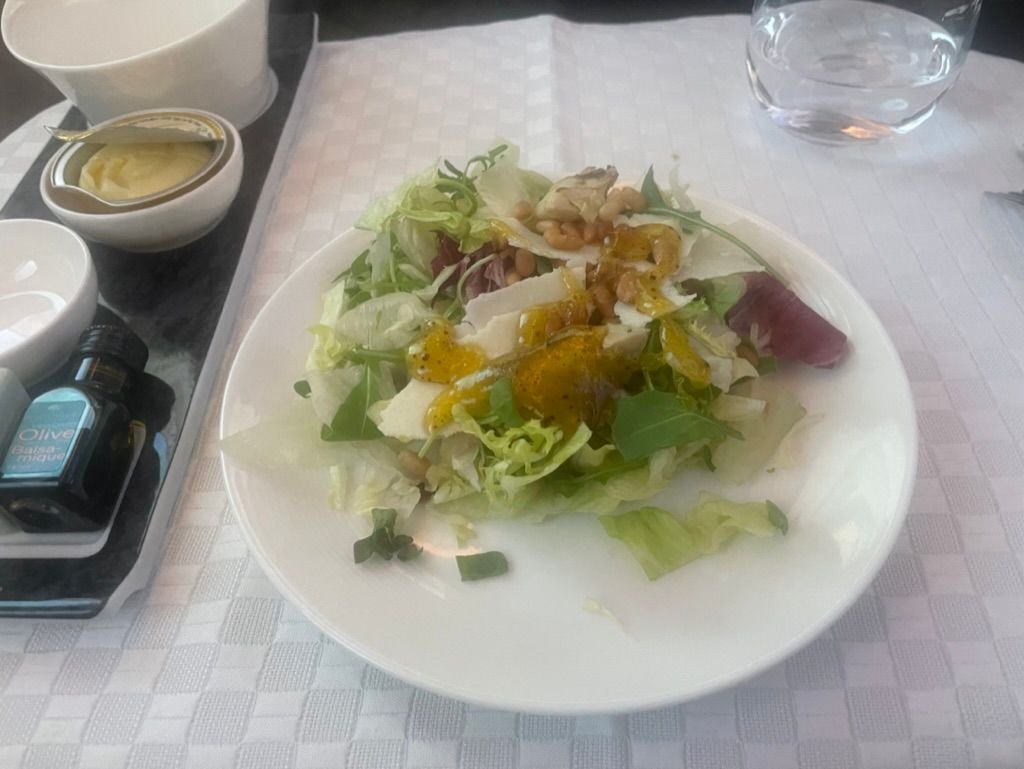 The salad course was up next and didn't disappoint either. Although it may not have stood out in the way the previous two did the garden vegetable salad seemed fresh and had the dressing I had requested earlier in the flight.