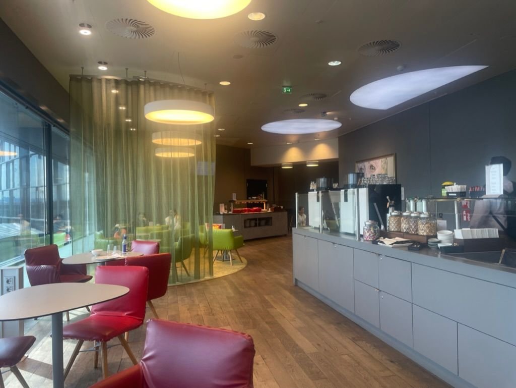 The Austrian business lounge is relatively small, but remained mostly empty for the one and a half hours I spent in it. Seating options are plentiful with conveniently located outlets as well as unobstructed views of the ramp and runway.