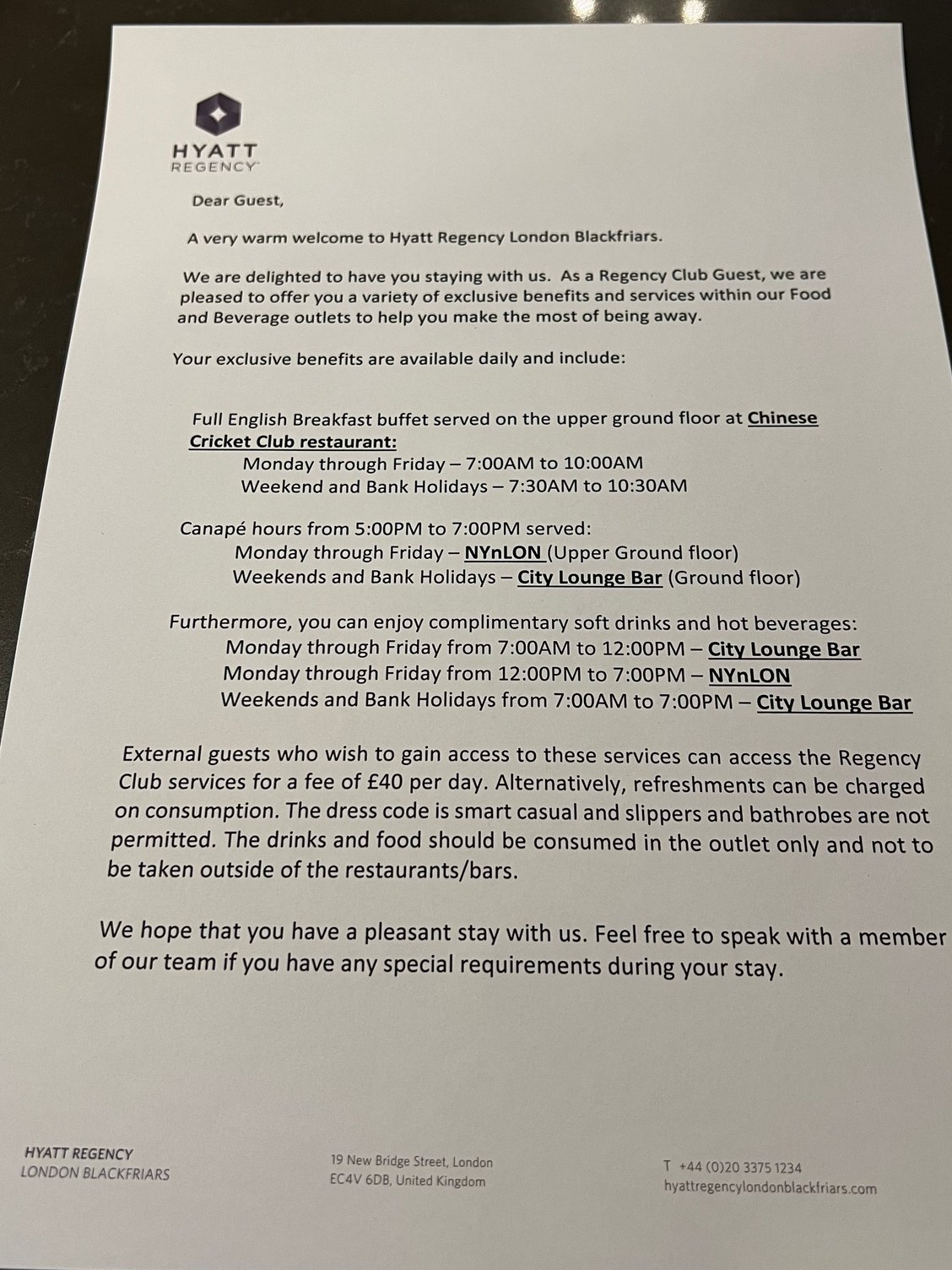 Stayed here recently. There was no executive lounge. Attached letter shows the detail about the club access benefit. *They took me to NYnLON for breakfast instead of Chinese Cricket, though. Great breakfast and Cocktail Hour, super friendly staff, loved the hotel.