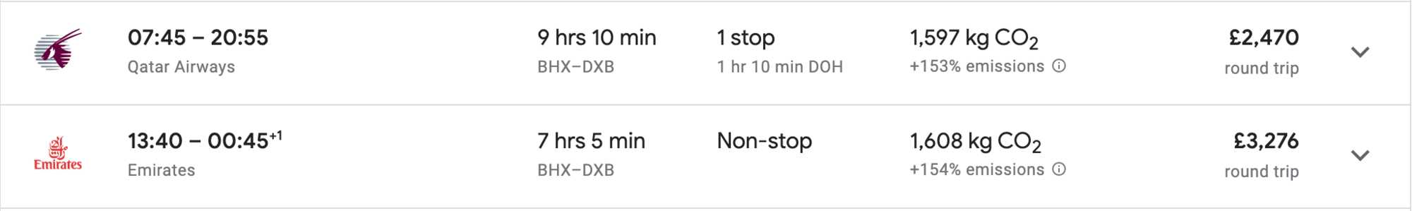 Another reason for QR over EK could be the price. QR prices have been reducing, whereas EK are still at the post Covid high levels :-