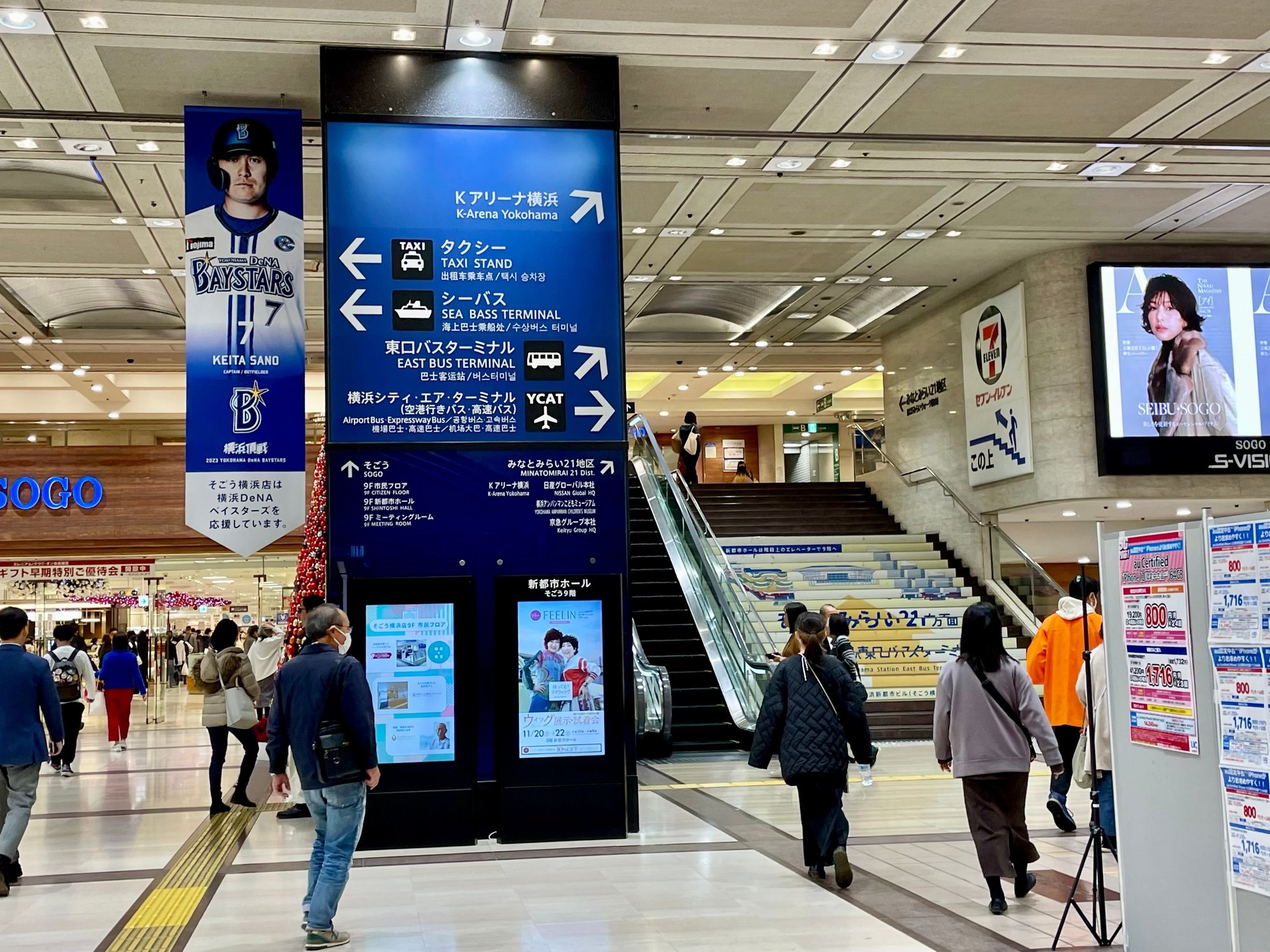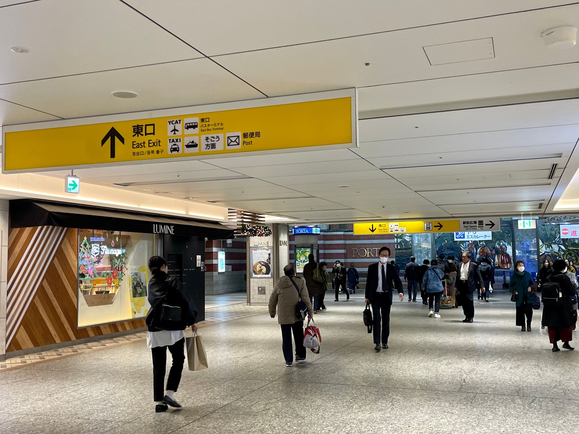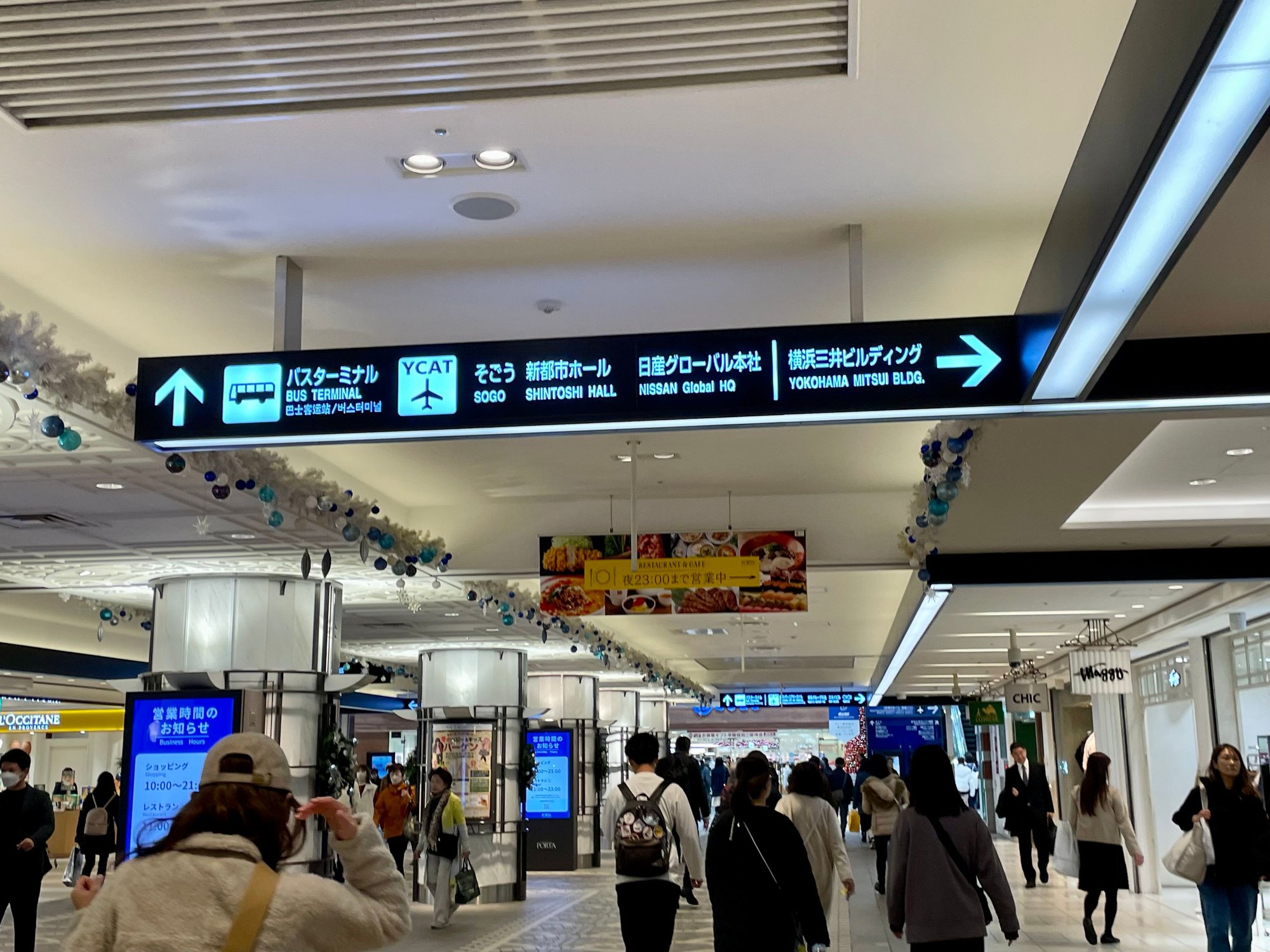 You’ll walk through an underground shopping mall (Porta) following the signs for Sogo, YCAT (Yokohama City Air Terminal) and Nissan Global HQ.