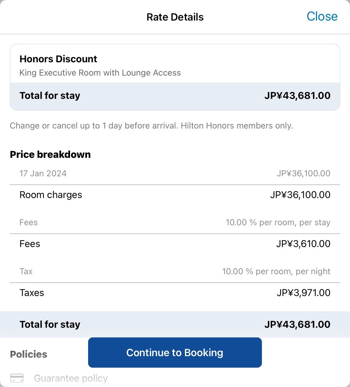 I paid ¥22,990 all in which was acceptable given the current exchange rate. However looking at the price difference between a King Deluxe and a King “Executive” Room with Lounge Access on a random low price day in January I suspect people may stop paying an additional ¥20k plus per room for lounge access plus possibly breakfast in the lounge once they find what they are getting for the extra money.