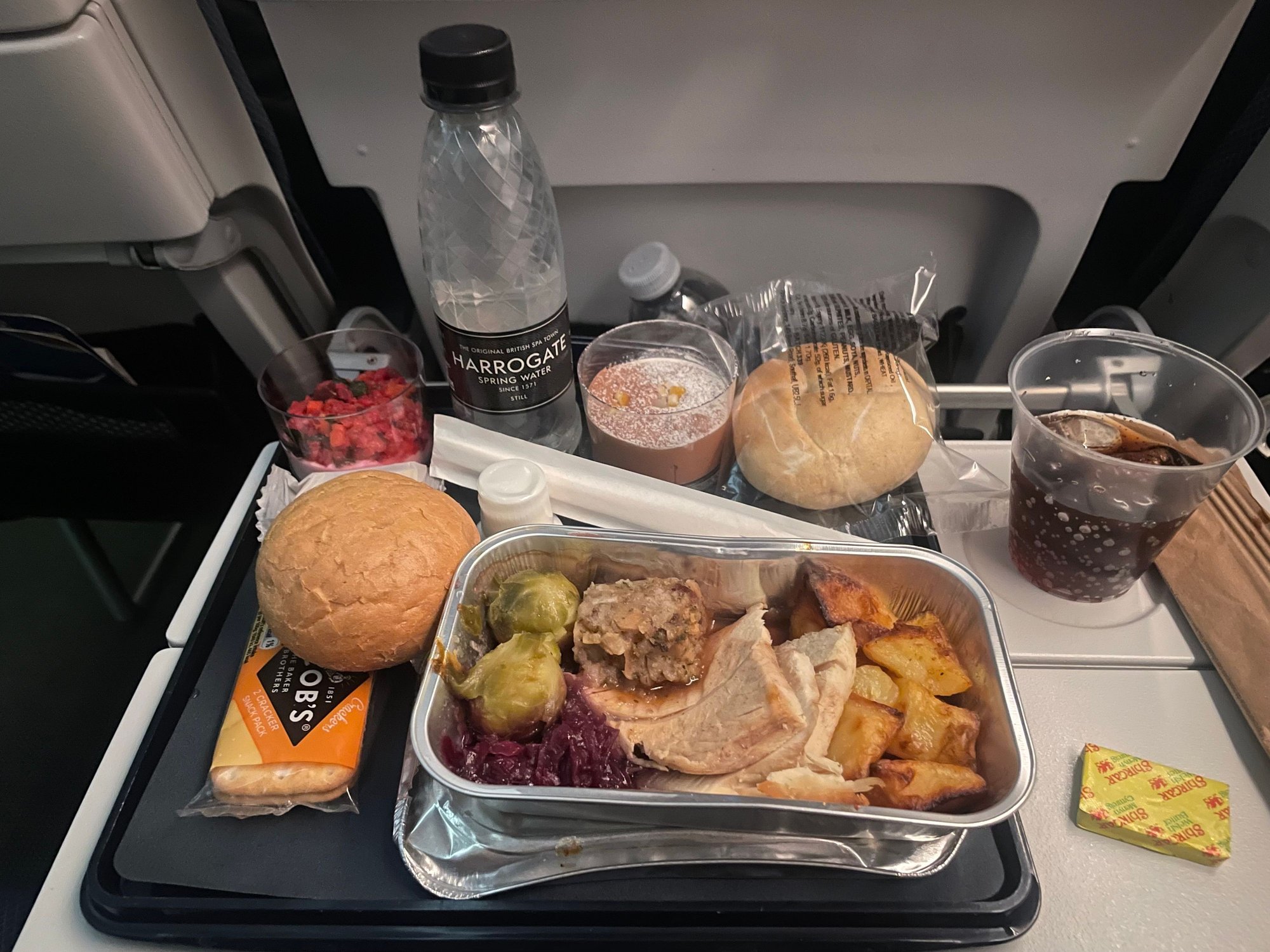 1st meal was choice of Christmas Turkey dinner or cheesy lentil pasta.