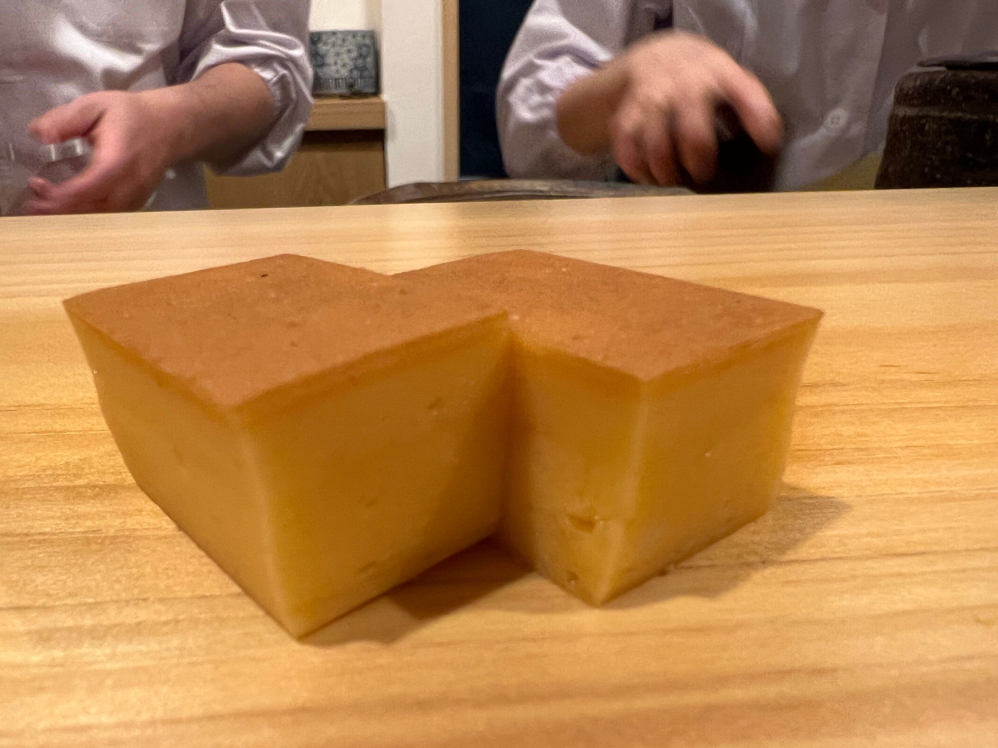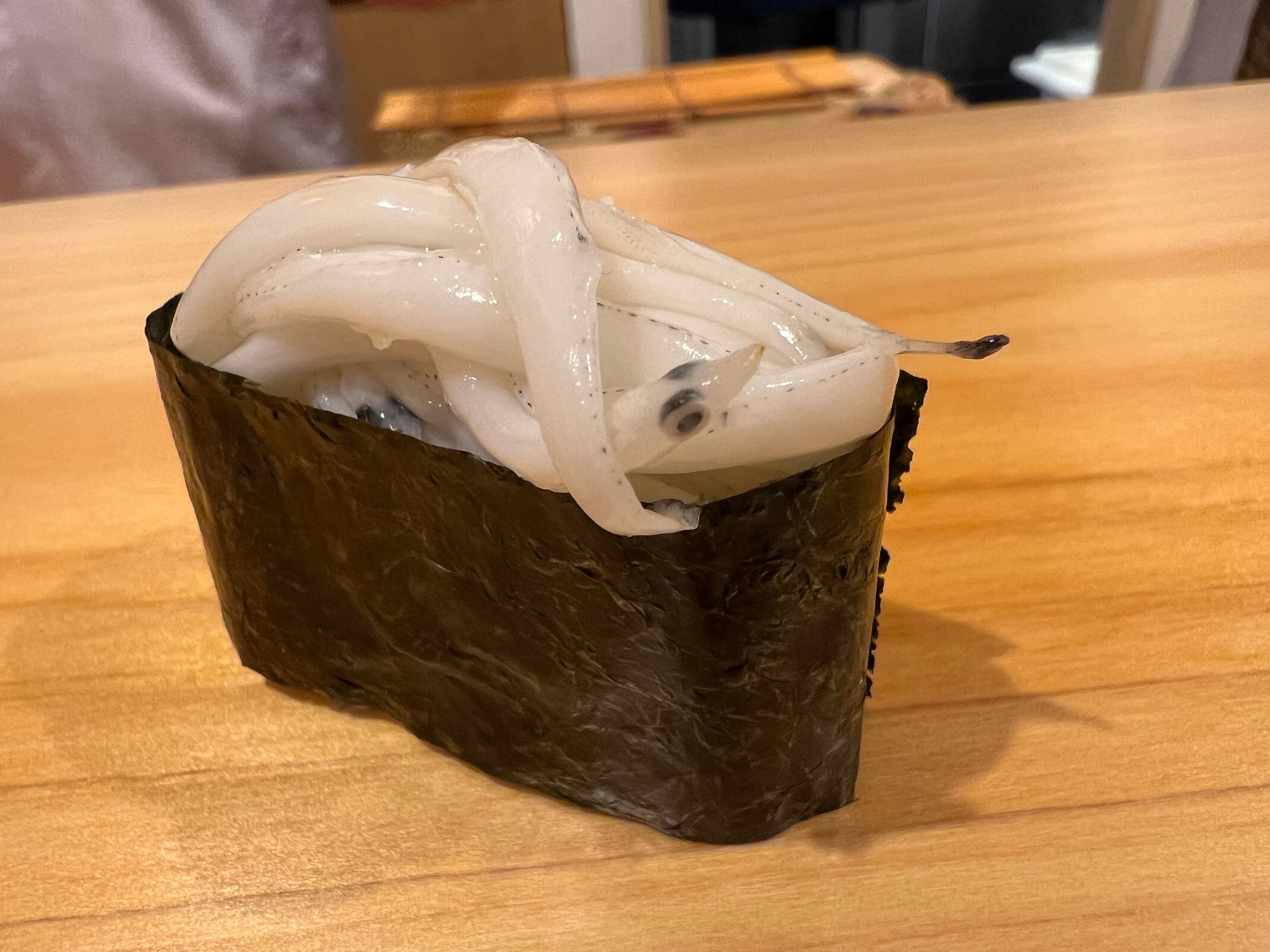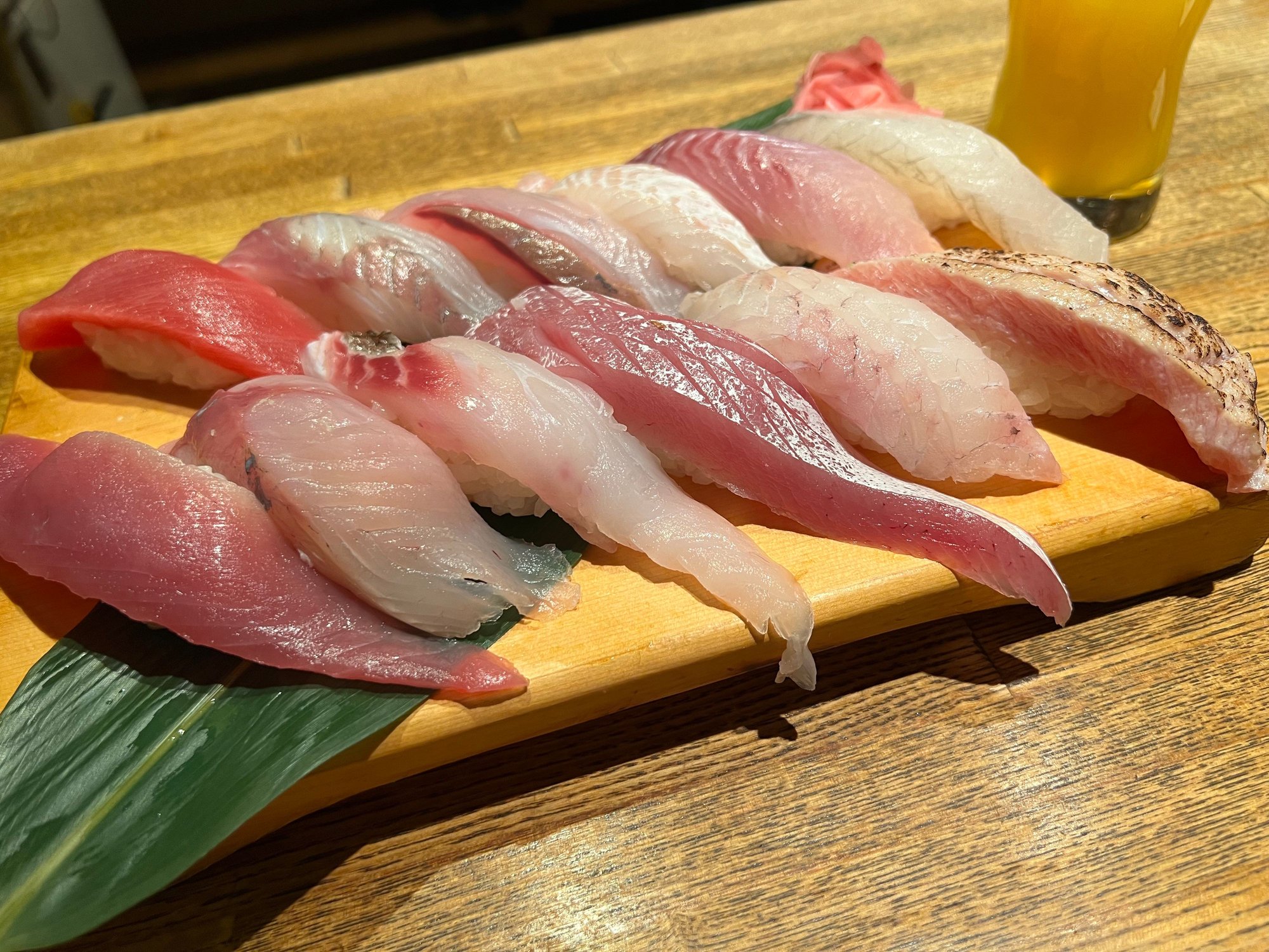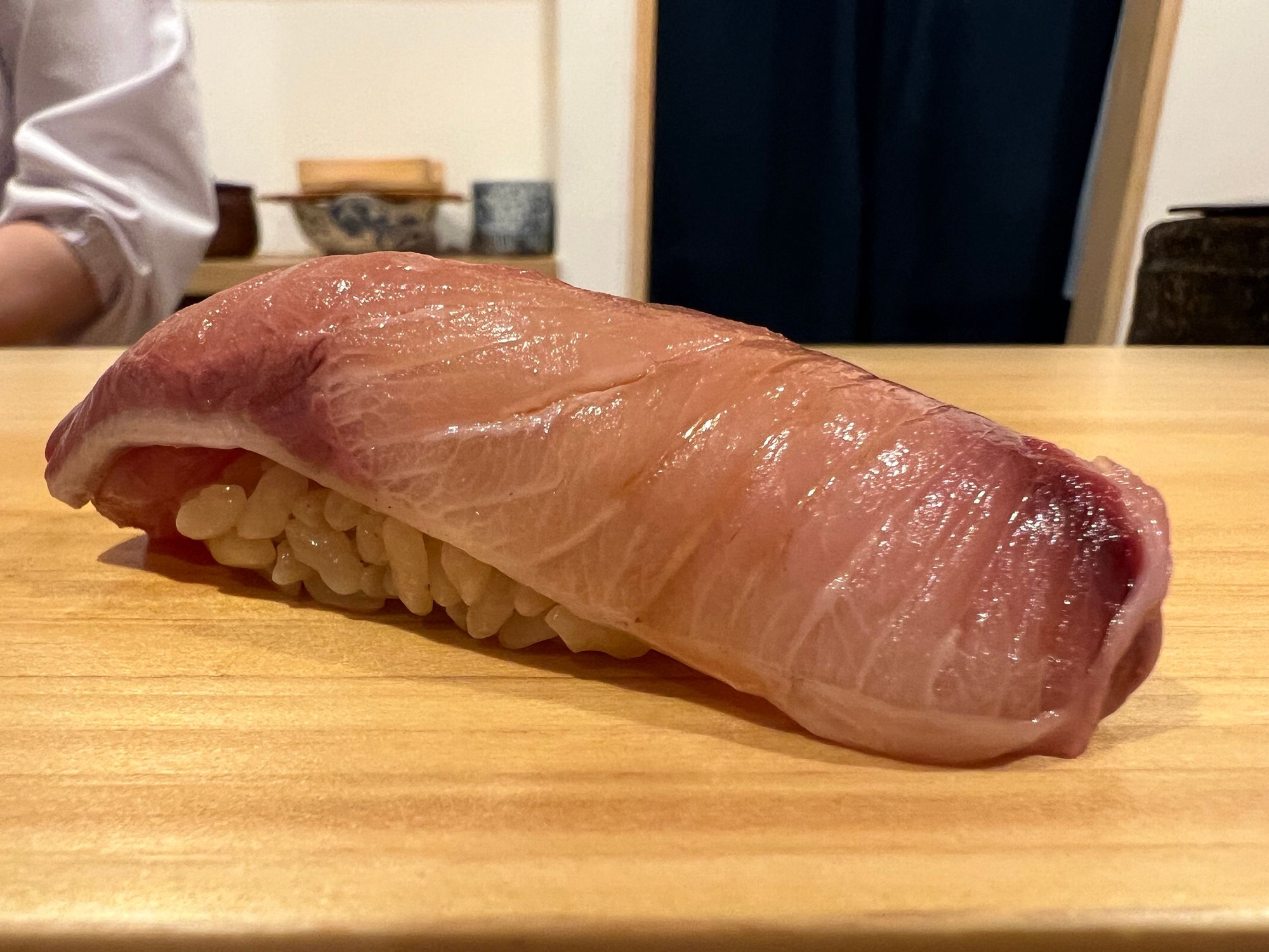 I mentioned this place in another thread, but our assessment is a worthy experience for JPY9350 (we don't drink, a JPY12000 option is available with all-you-can-drink). The concept is high quality ingredients normally expected from a JPY20,000++ restaurant served at more than 50% off because the sushi chef is a trainee. Our chef was a very young (23) former baseball player who had one year of sushi experience. The restaurant is apparently owned by Sushi Ginza Banya Kai, so you can get roughly the same meal by going to the main restaurant for about double the price, but prepared by more experienced professionals. Was it worth it? The quality was not the absolute greatest, but it was far, far above sushizanmai, for example, but for US$65, I'd be eating here every week - although I suspect the menu does not change all too often. Because of the limited experience of the chef, the nigiri is pre-cut, but that seems to happen between seatings since the fish does not dry out or oxidize and is still in good shape when it gets distributed. The nigiri are all made at the same time (9 people), placed on a tray, and then handed out to customers by another chef. The staff are supervised by a senior chef from another restaurant, although he told us that he has limited sushi experience, even with 24 years of experience as a chef (or maybe he was kidding).