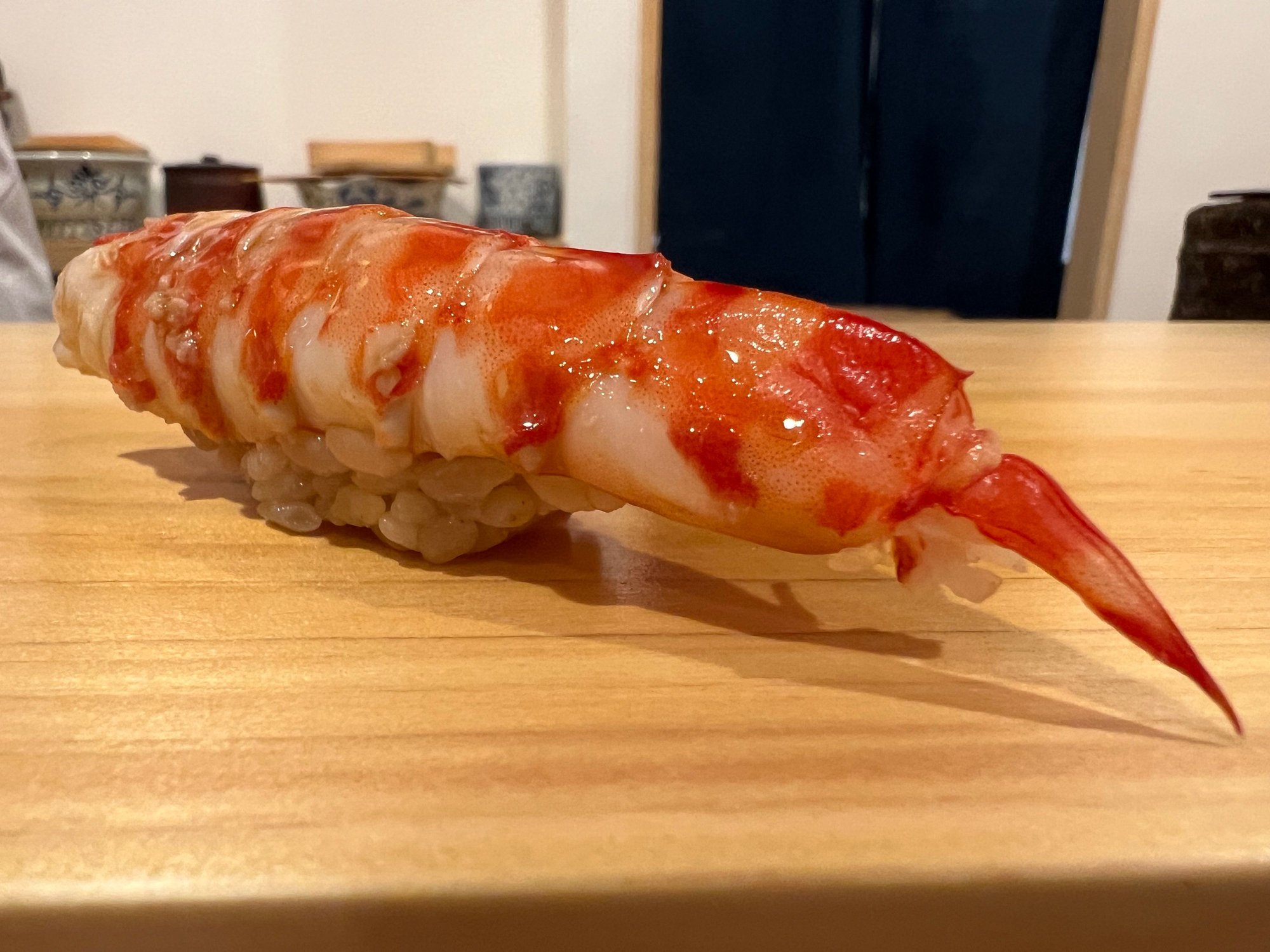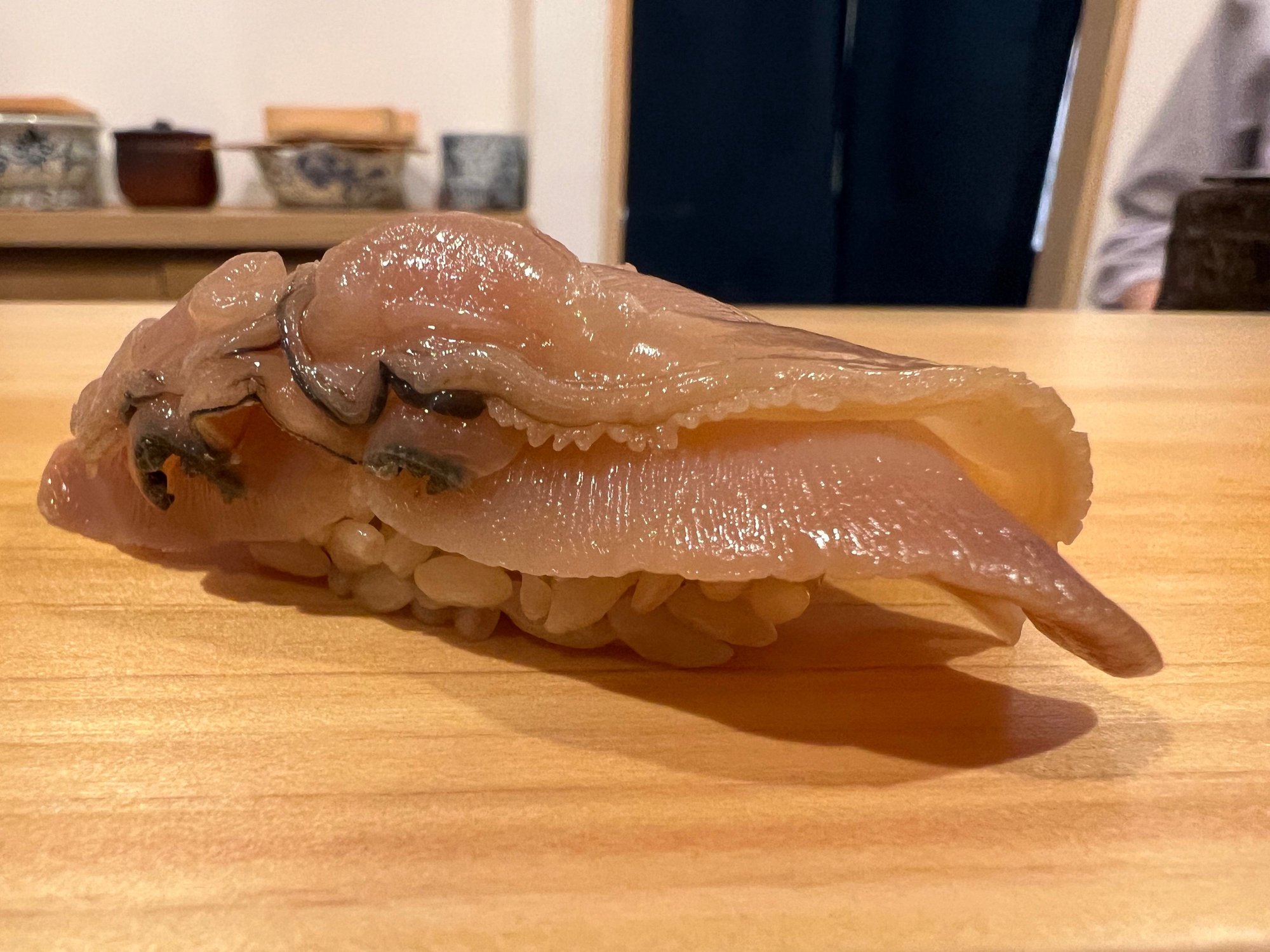 This is the sushi "division" of a larger restaurant group that normally does izakaya and dinner set fare - it's one location that does almost all sushi. The quality, for the price, was remarkable. While the Tablelog reviews below are mixed, we had a great experience, including roughly 42 total pieces between us, which included a tuna sample plate, and 6 total pieces of o-toro and chu-toro. In the US, with lesser quality, this meal would have run us about $120 each, but we only paid - brace yourself - US$35 per person. Our neighbor had a beautiful sashimi salad that was made from a whole fish that was fileted and cut by the chef, and decorated with the head and skeleton into a piece of art, and they also had a live shrimp that was still kicking - literally. We ended up ordering our own live shrimp to try it, but ours were served with the tail broken and bent, probably to stop the shrimp from moving and horrifying the "foreign guests", although we wanted the dancing for a video - regardless, it was delicious. Photos below and here is the tablelog link: