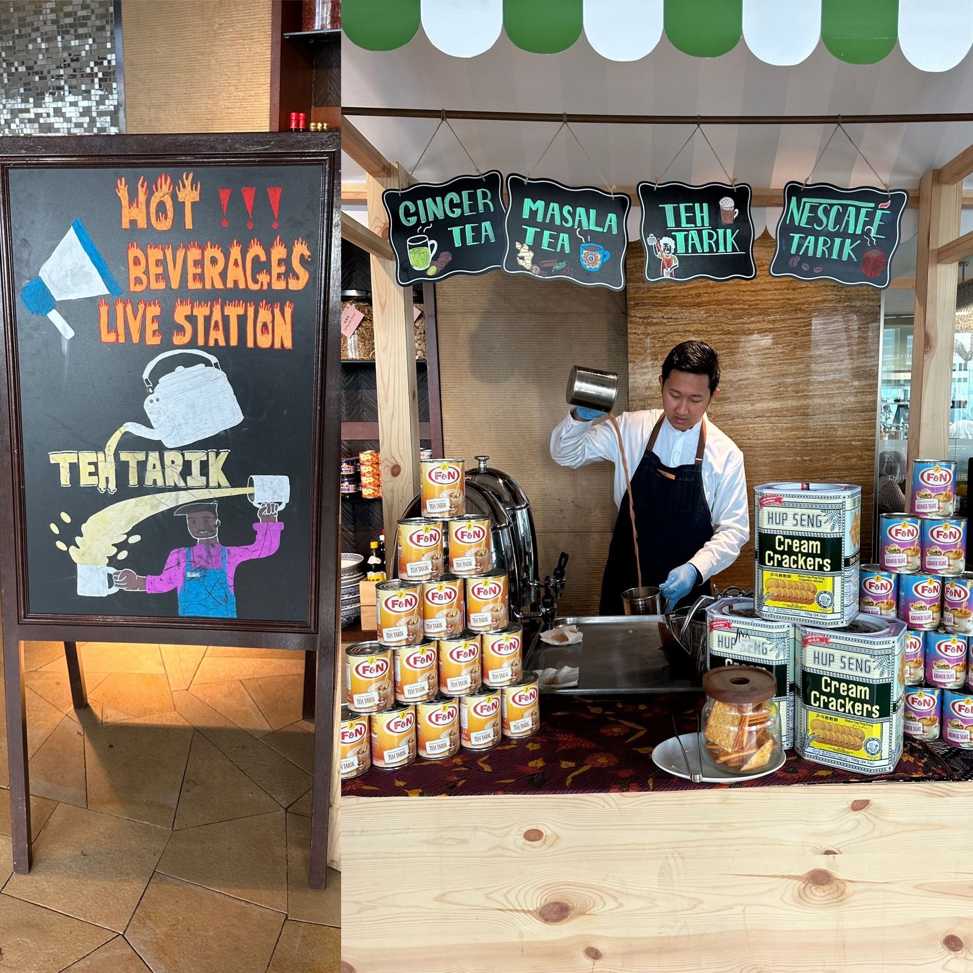 - Breakfast was phenomenal. We always ate in Thirty8 so have no idea what was on offer in the lounge. We stuck to the Asian buffet. One day of three, roti was offered. Highly recommended. One day, they had berry lassi and another day mango lassi. I had noodle soup made a couple days and always took some dim sum. Something completely new to me was the tea stand. Such fun! It had masala tea, tarik tea, and ginger tea. Ginger tea was my favorite. Tarik tea is the national tea of Malaysia. It is a mix of tea and sweetened condensed milk. Any of the teas are made up, then poured from one pitcher to the next which gives it a lovely froth.