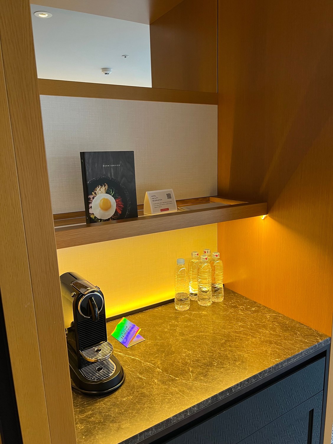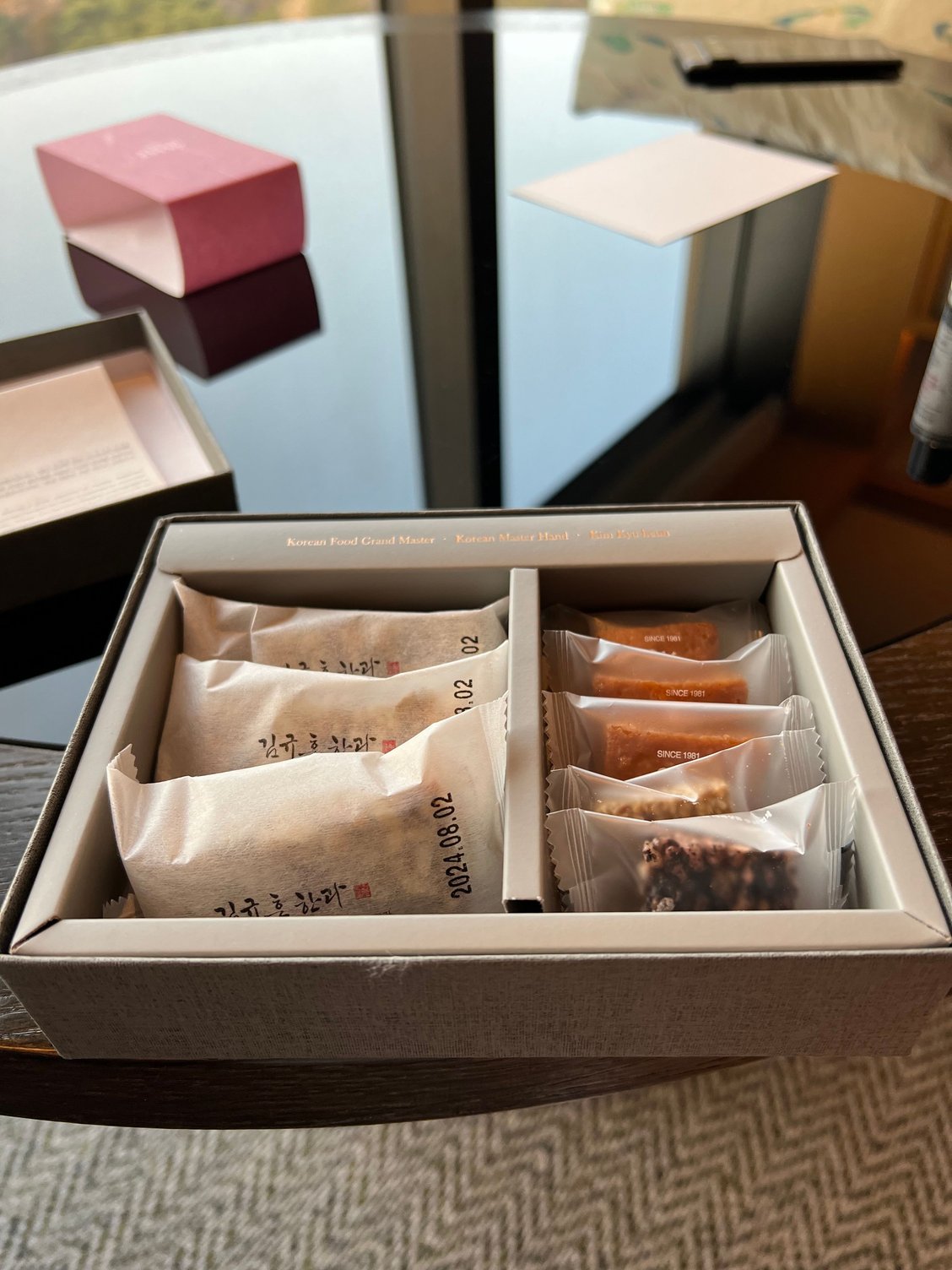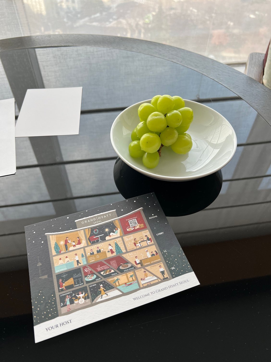 - Had a box of Korean desserts in my room as a welcome gift (not a fan of the flavors) and a nice plate of tasty grapes with a nice note from the club staff delivered on the 2nd day