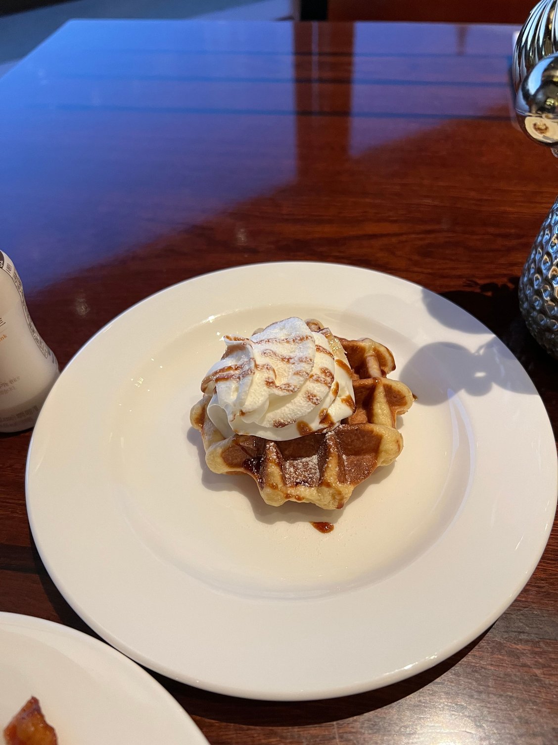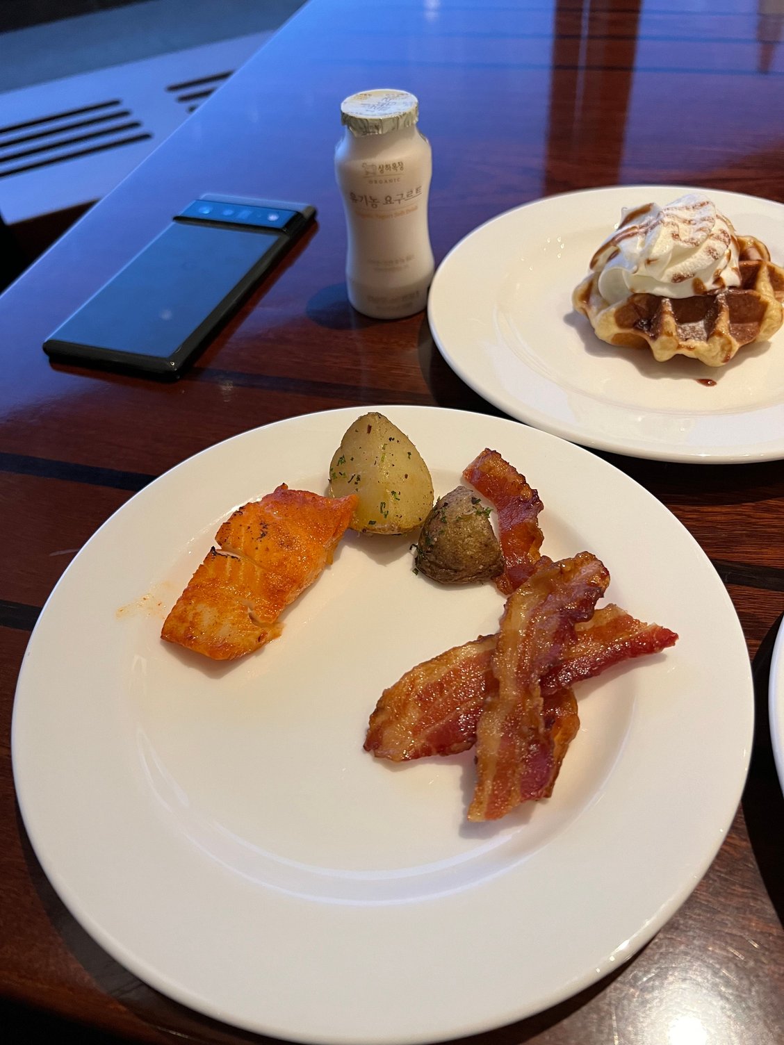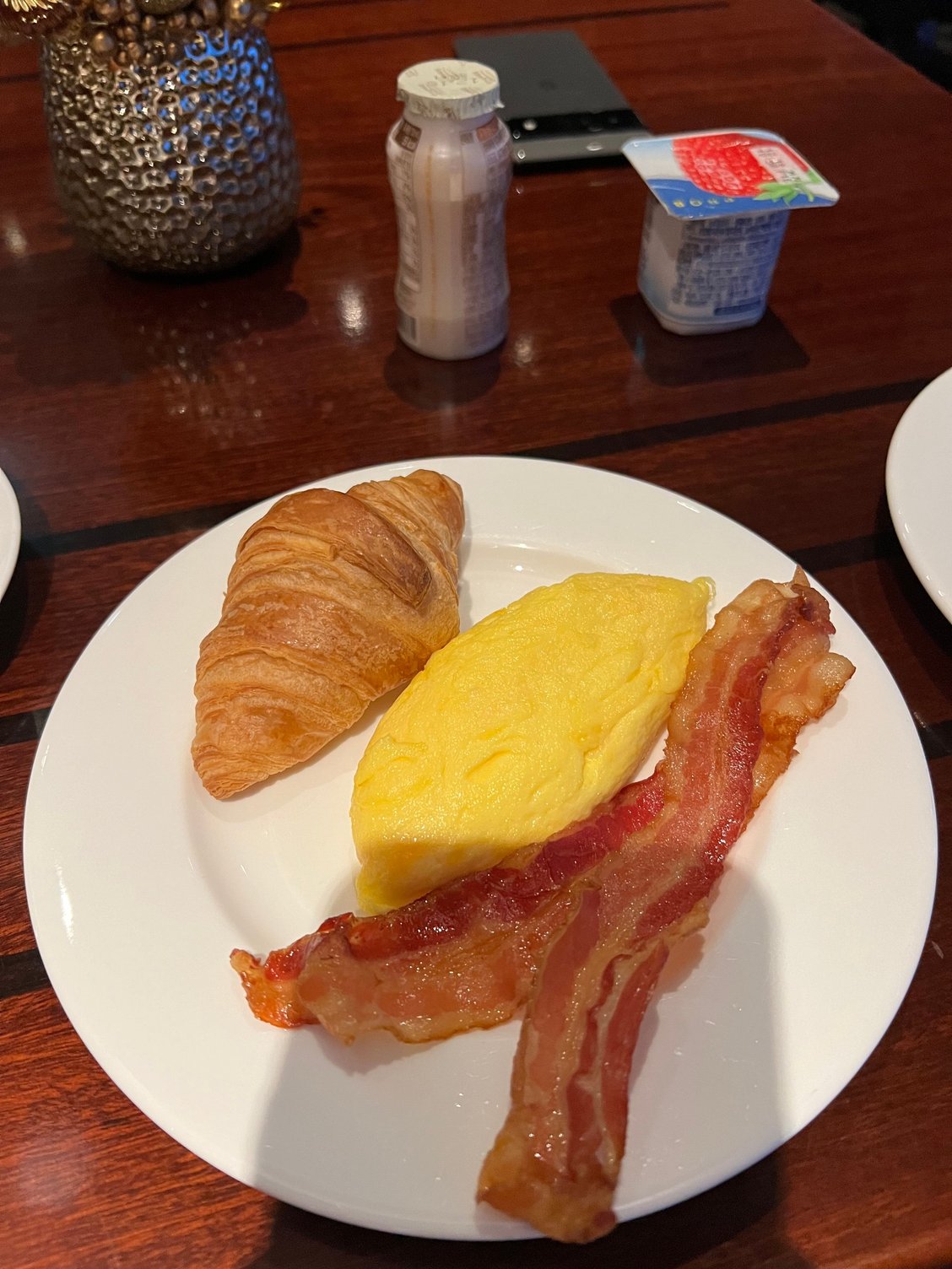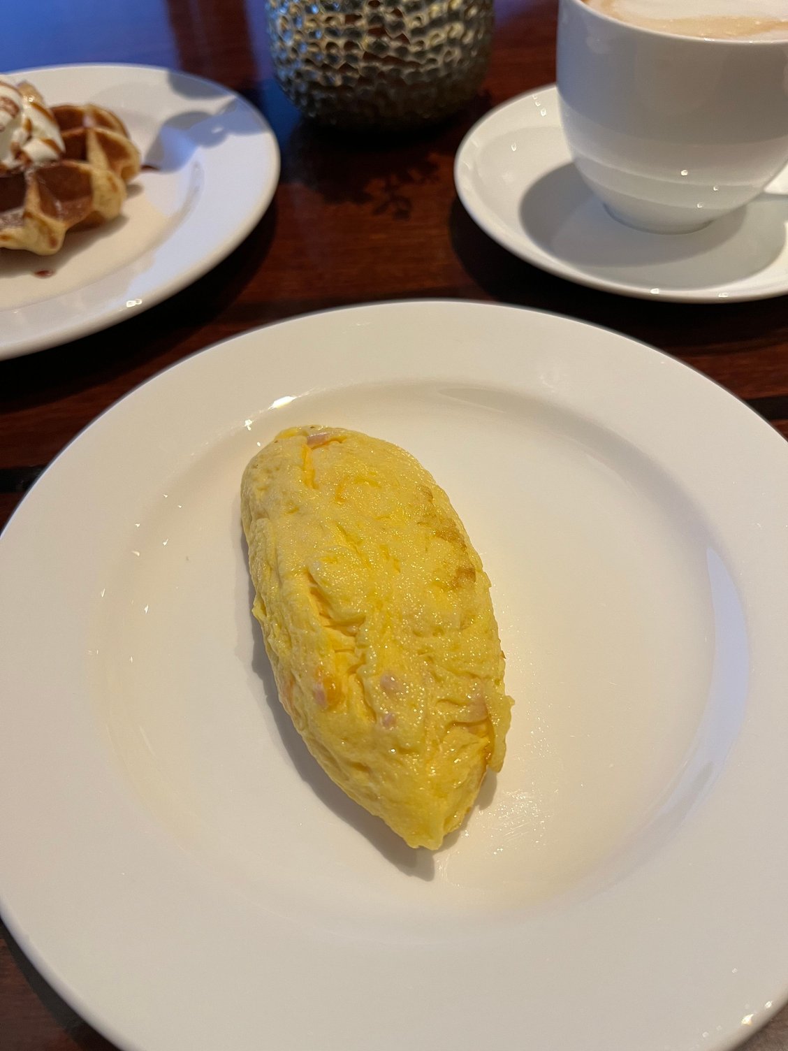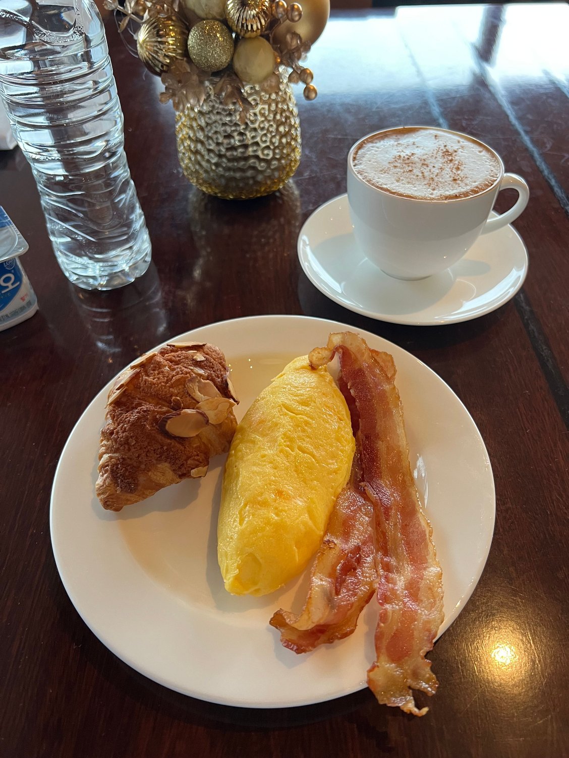 - Breakfast is only in the Grand Club, but the food is strong - tasty made-to-order omelet and rotating pancake or waffle special (liked the pancakes better), tasty bacon close to US, good barista coffee prepared by staff