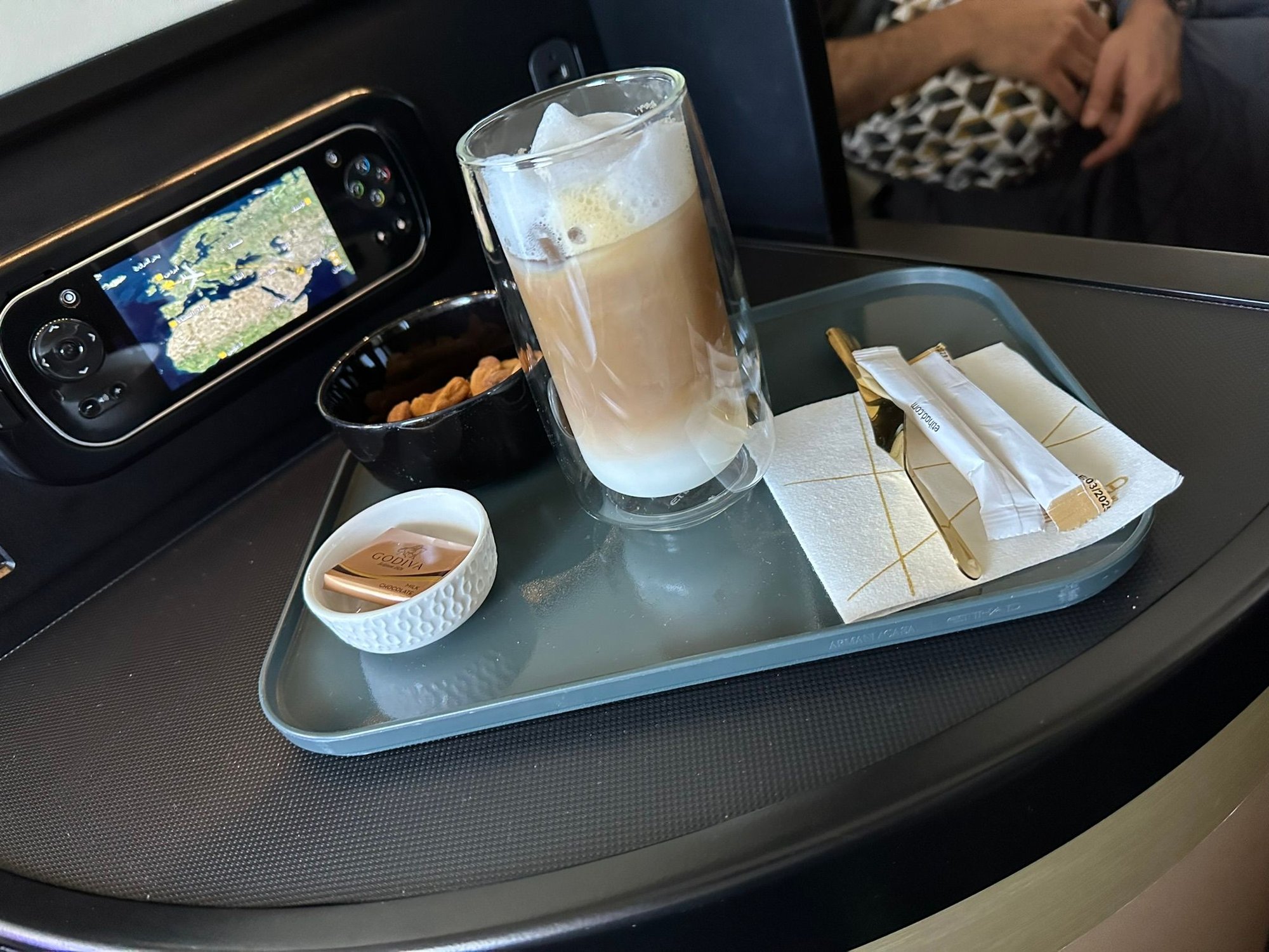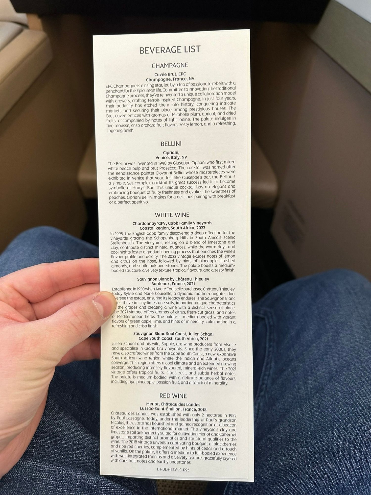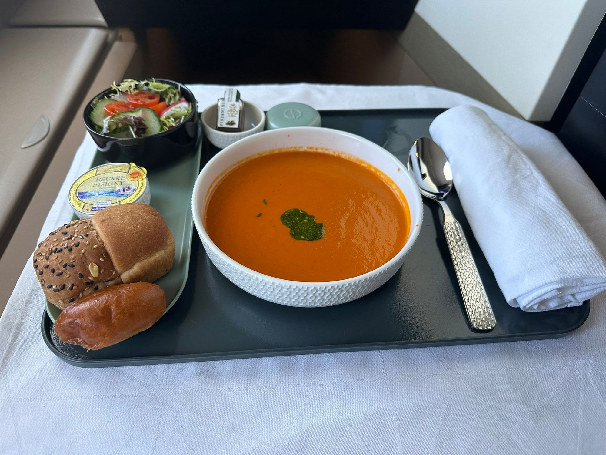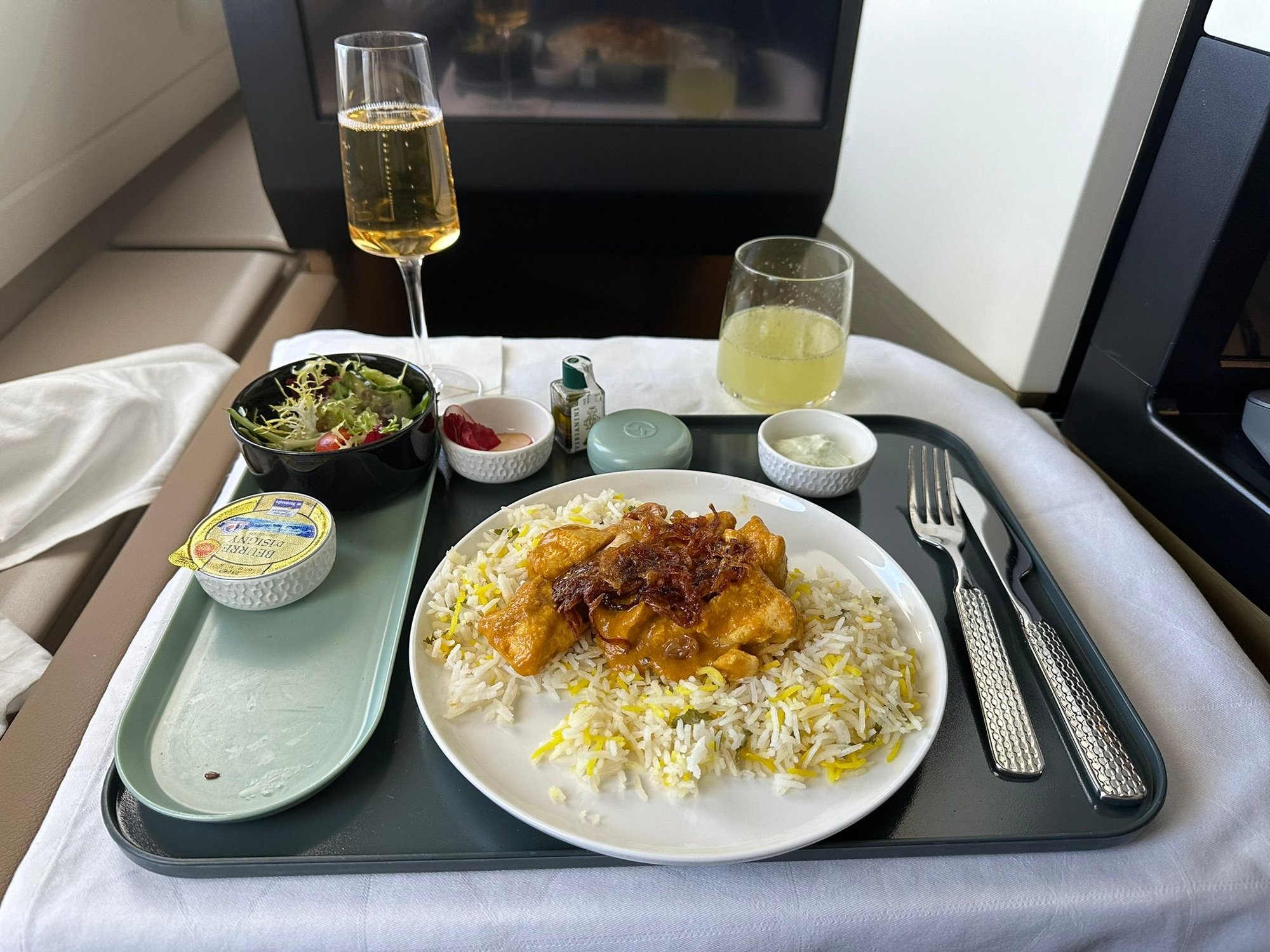 Food was tasty enough but service was incredibly slow, began after take off but dessert course still not served 3.5 hours into the 6:15 flight