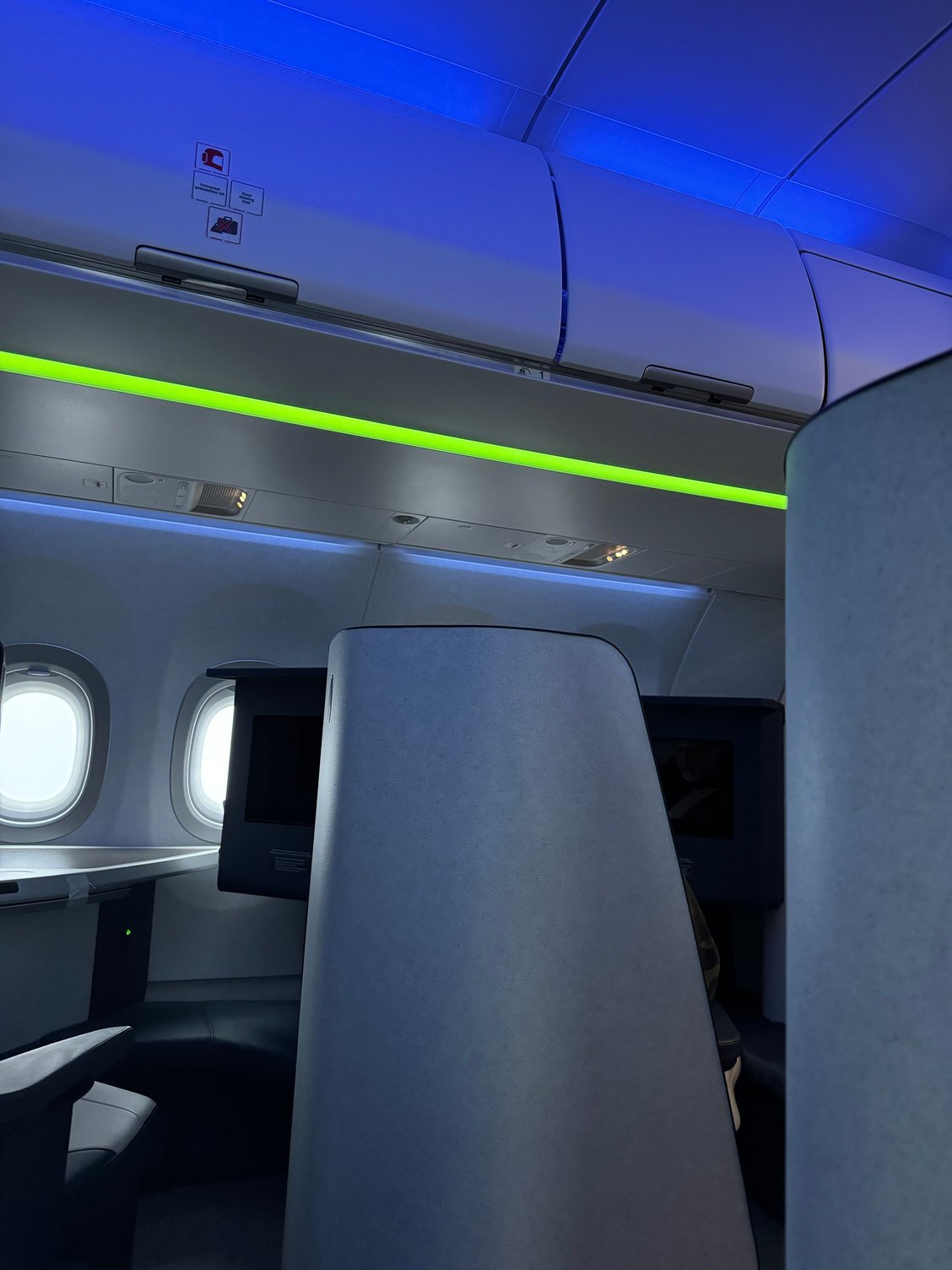 Mood-lighting fluctuated between blue and green during boarding