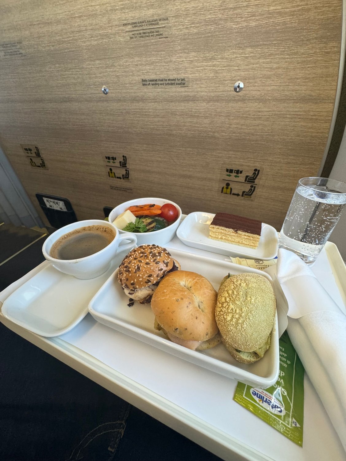 Our afternoon flight was well catered, but no choice was given by the cabin crew. A béchamel lasagna and cannoli were served. I had more black coffee and sparkling water.