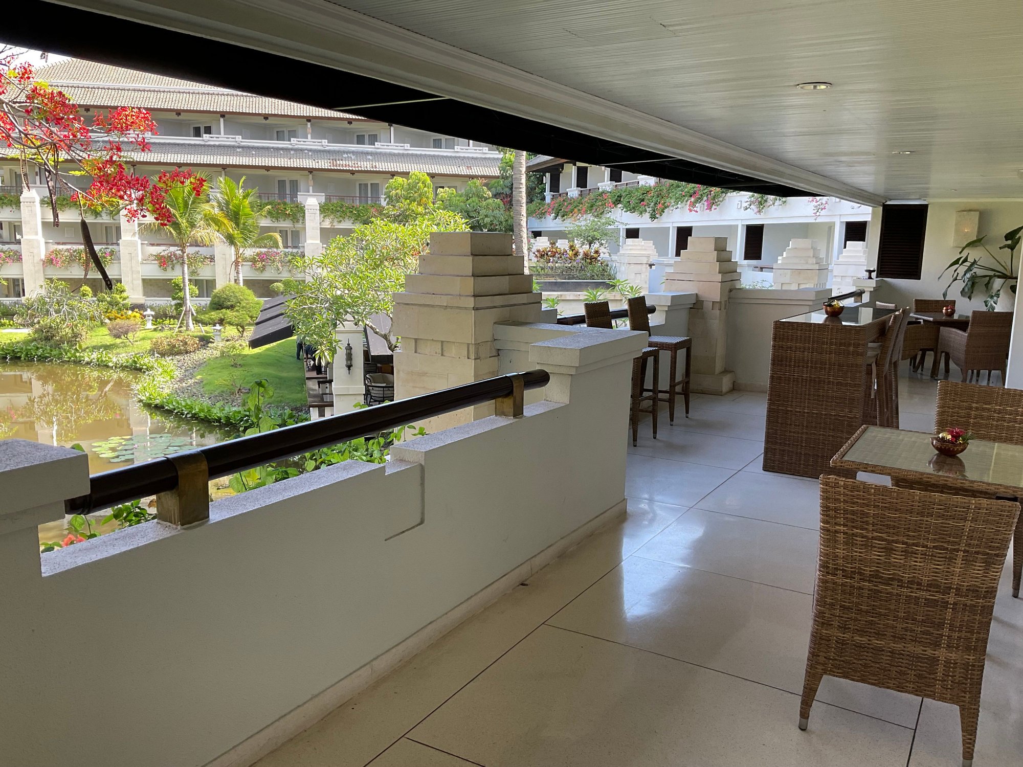Outdoor seating area is between wing 4 & 5 diagonal above the Uluwatu Spa