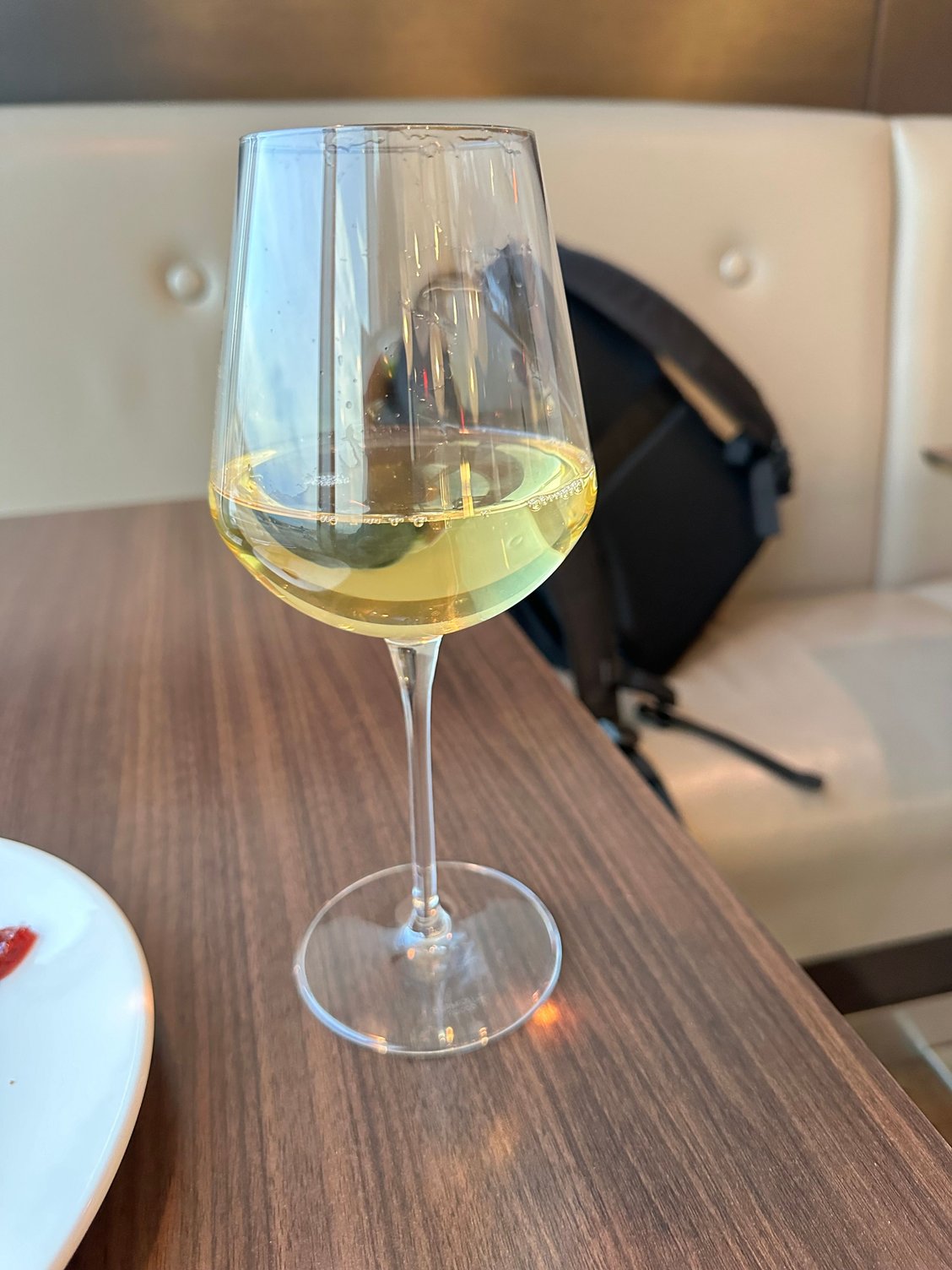 I did take up the offer of a glass of the Viognier which I’m currently enjoying along with a tiny taste of the hot buffet which has dried up quite a bit… there’s less than 10 people in the entire Lounge.