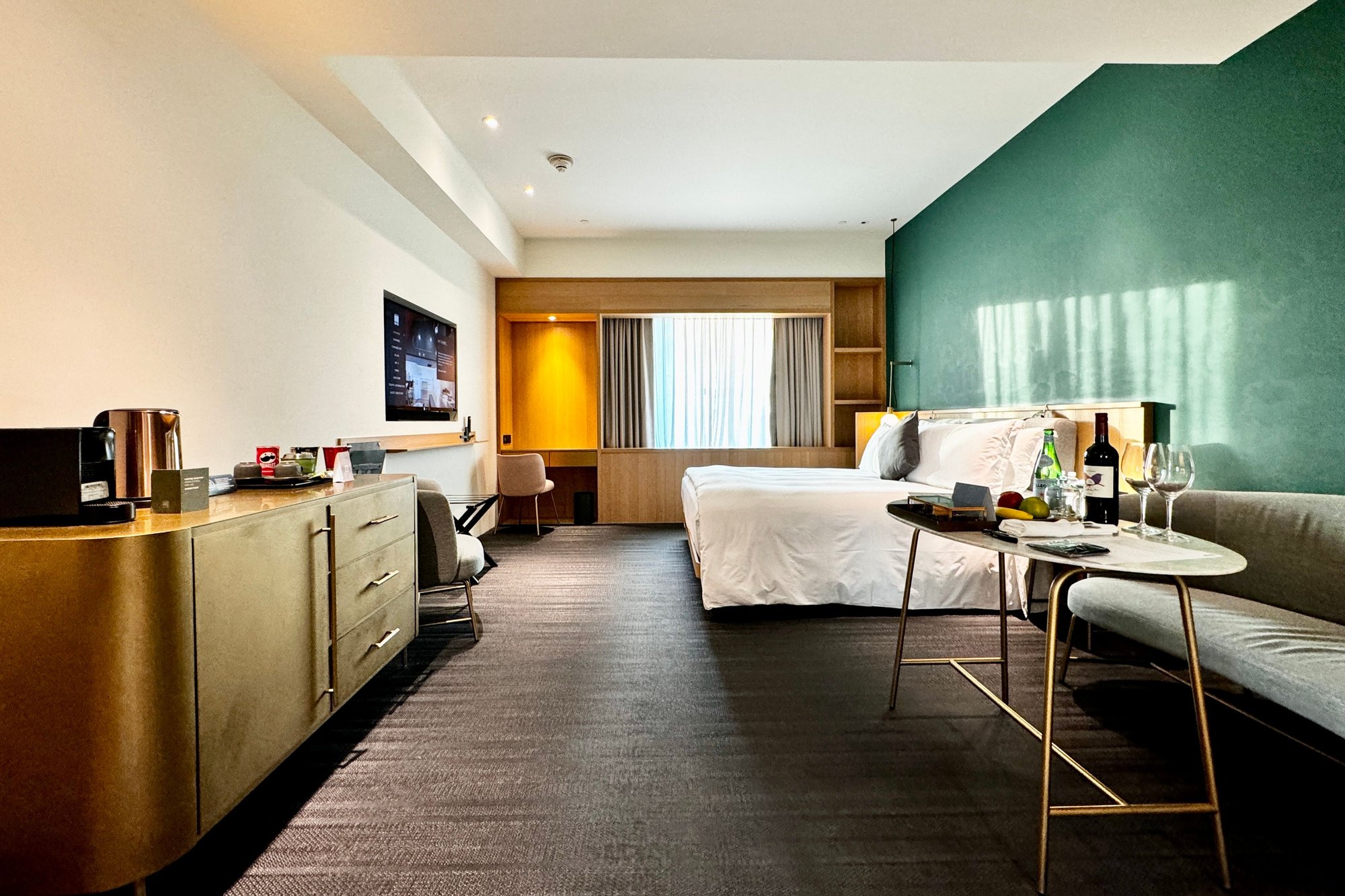 You can enjoy up to 600TWD food and beverages from Bar or Mini-Bar. Currently most of alcoholic beverages are request base. Only beer, some of soft drinks and snacks in the room.