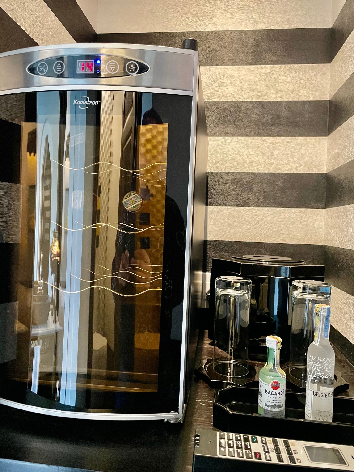 Wine cellar, minibar and coffee station