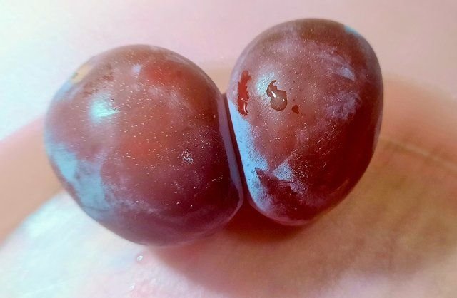 A very hot 31.3c here. As it's plum picking time and there's a glut of them the wife's had muggins here making jam. This siamese twin one was picked by her.