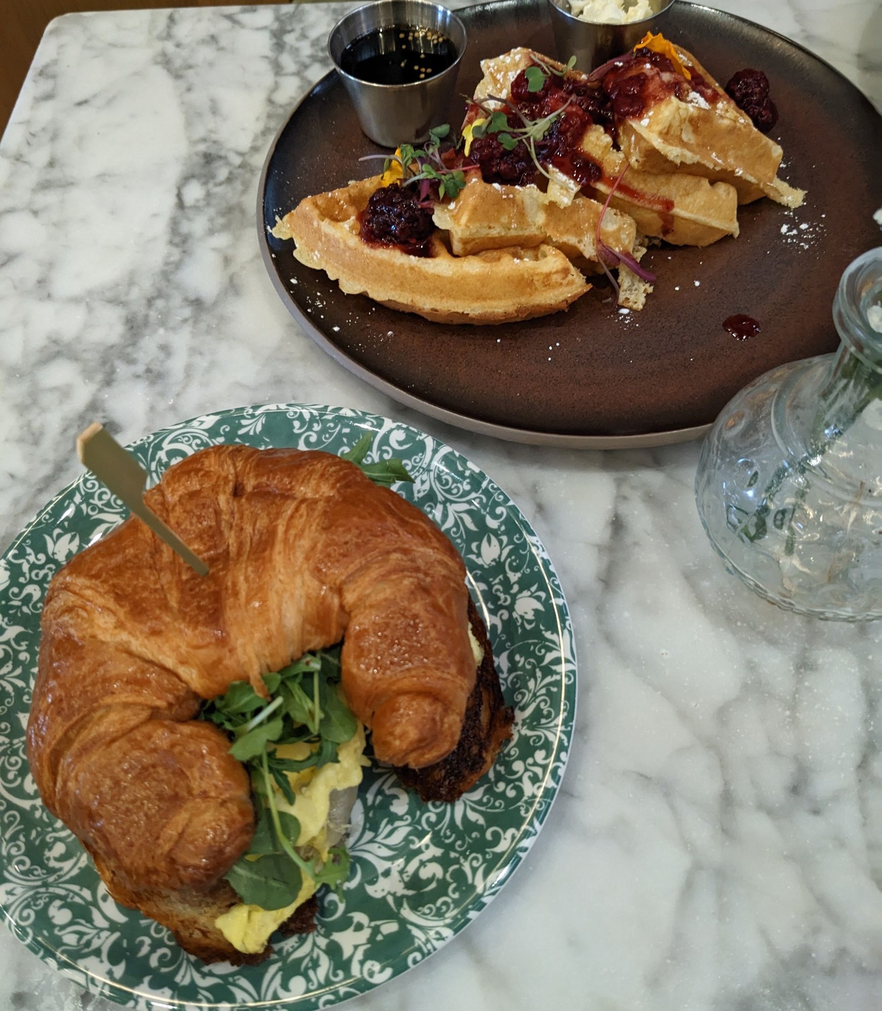 Breakfast details as posted previously, was quite good (waffles & croissant sandwich). Excellent decor in the restaurant and lobby.