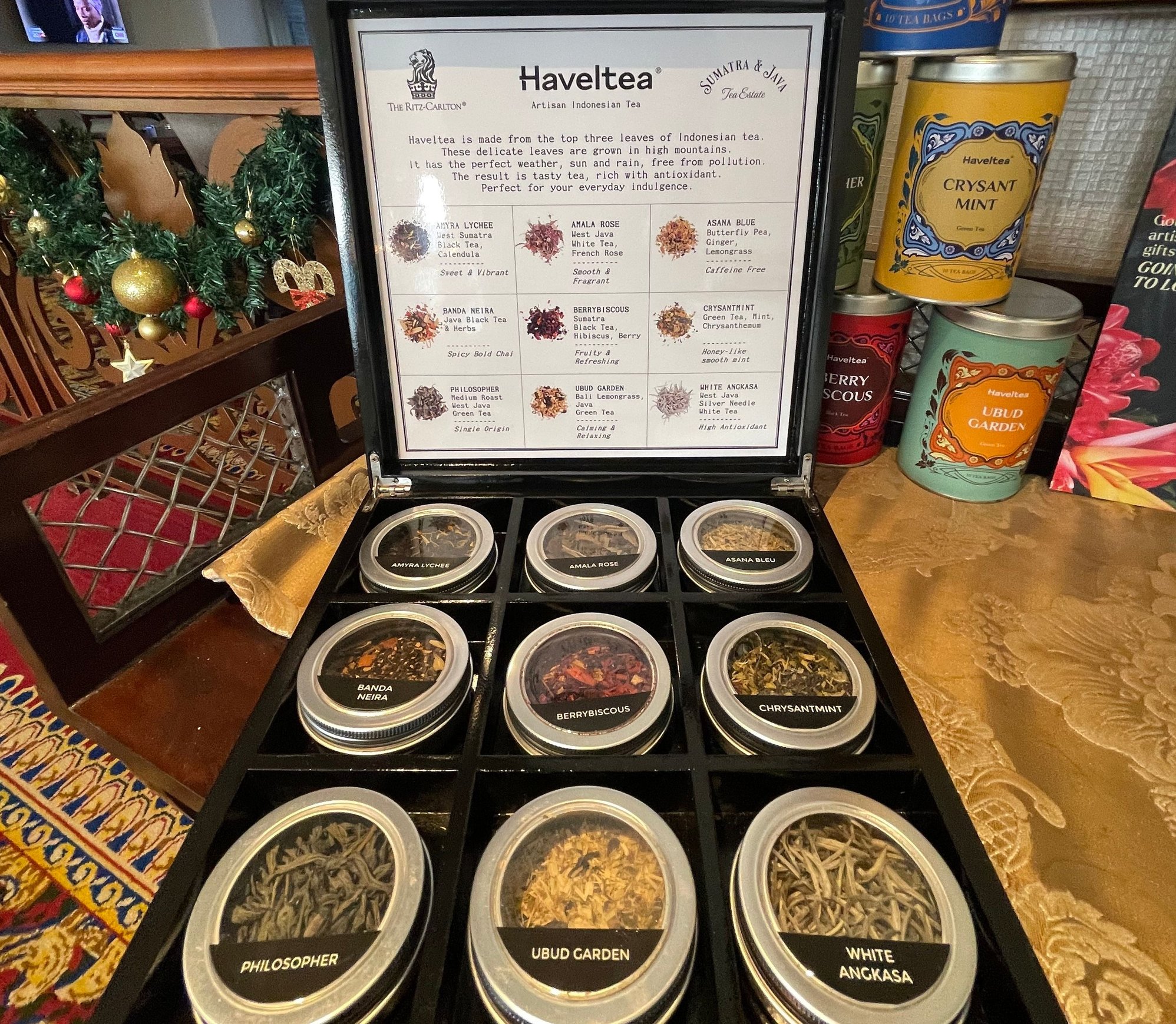 At afternoon tea, I eschewed the "Ubud Garden" (some chakra portals are means to be sealed) in favor of a Berrybiscous and was instantly transported to my boyhood in hippie-dippy California. Tasty and soothing, both.