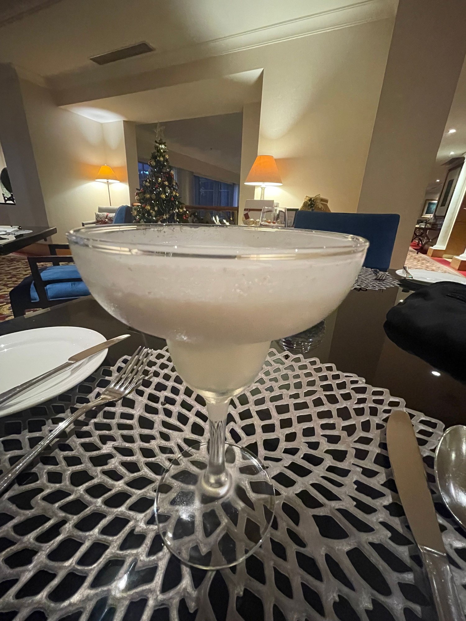 Espolon is a favorite of mine, and -- in the land of volcanically-projected imports tariffs on alcohol -- there was no issue amortizing the Club Lounge access cost with several heaping glasses of this excellent tequila, both straight-up and also in a quite nice, Christmas-y cocktail that tasted like spiked horchata.