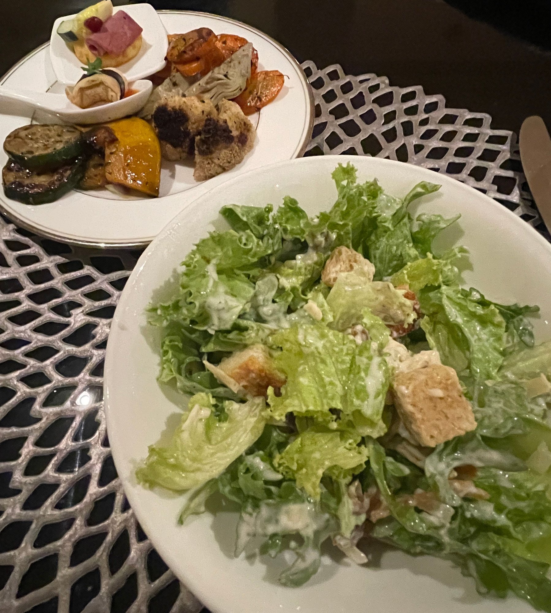 Talking of vegetables, there's a toss-your-own-salad station, where you can put a you Caesar together...