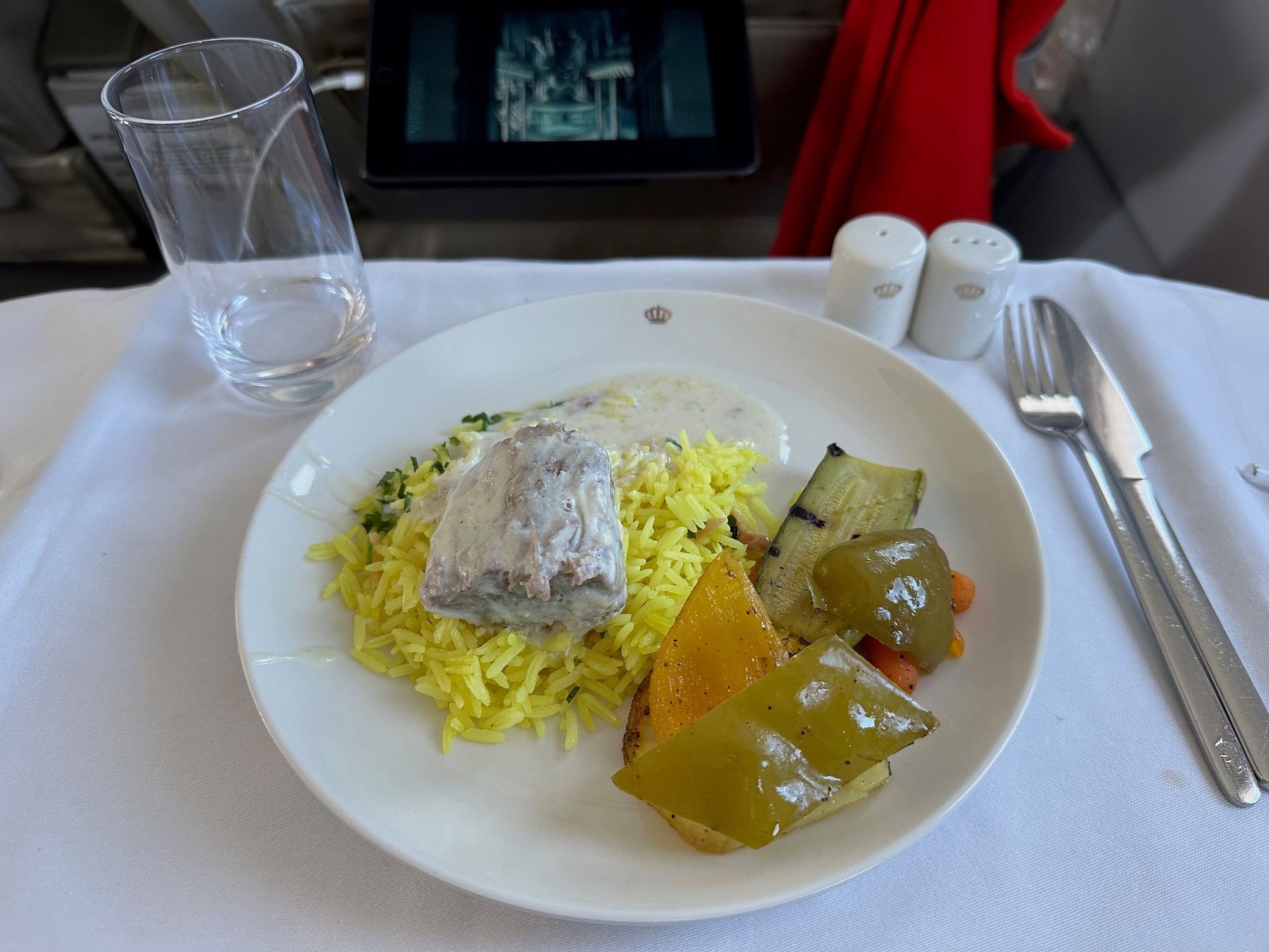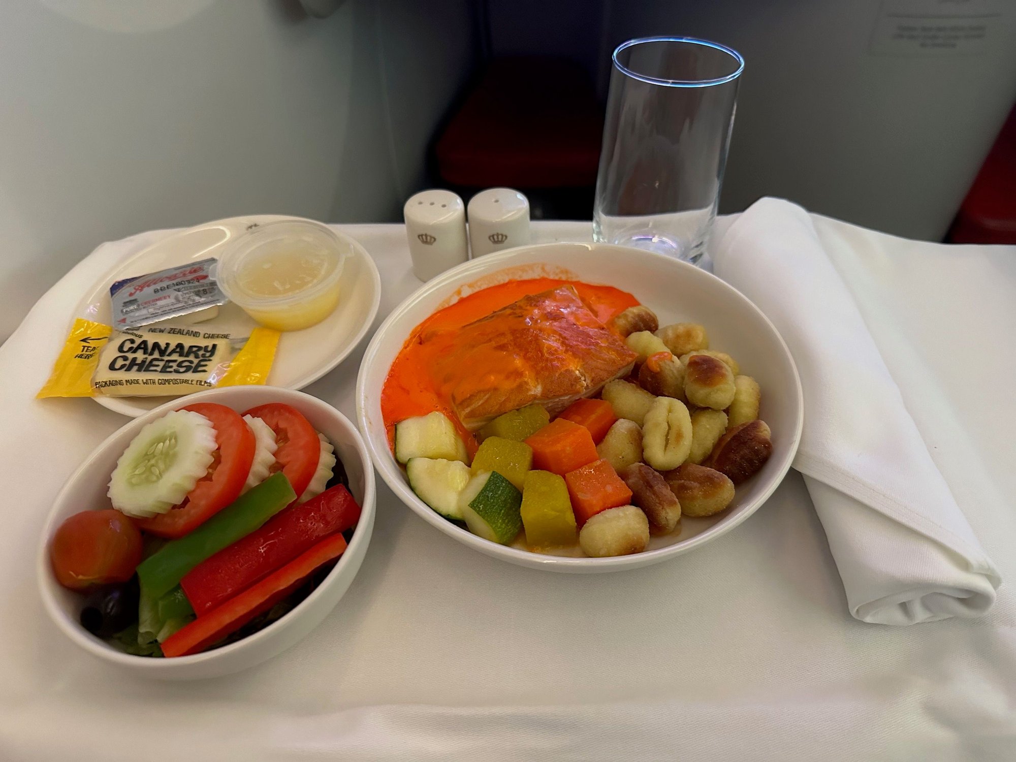 Since I had nice food in the QR lounge I opted for the fish course with gnocchi and vegetable which was not too bad.