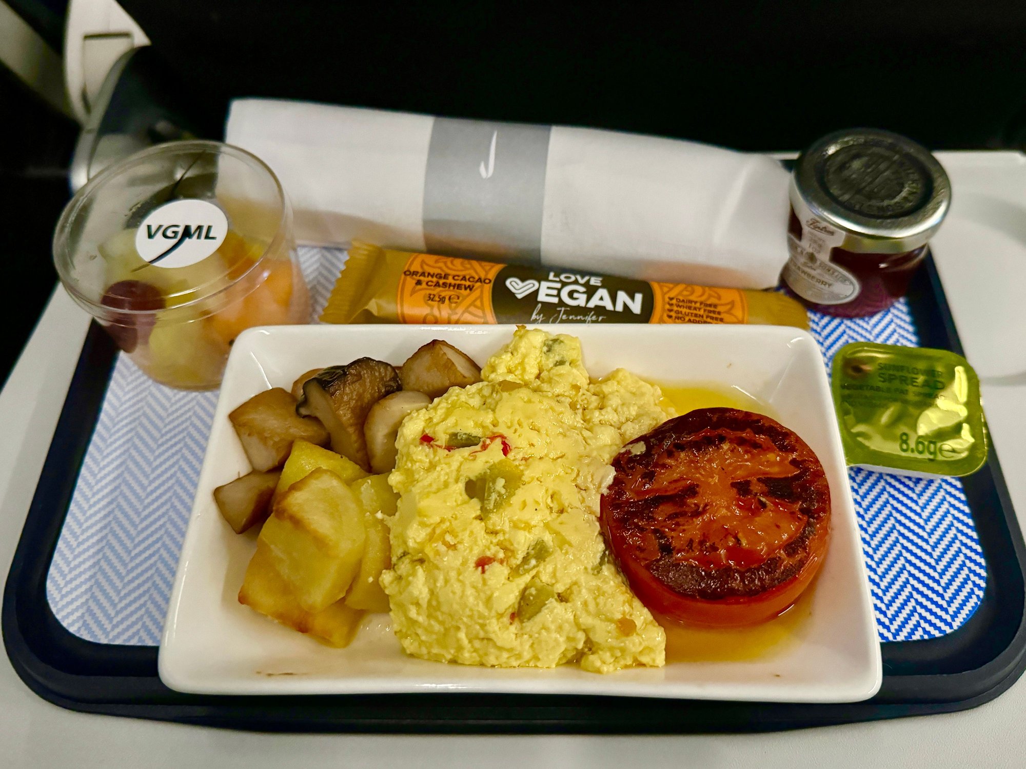 Vegan breakfast LIN-LHR, impressive taste! Butter and jam have no bread to be spread on though.