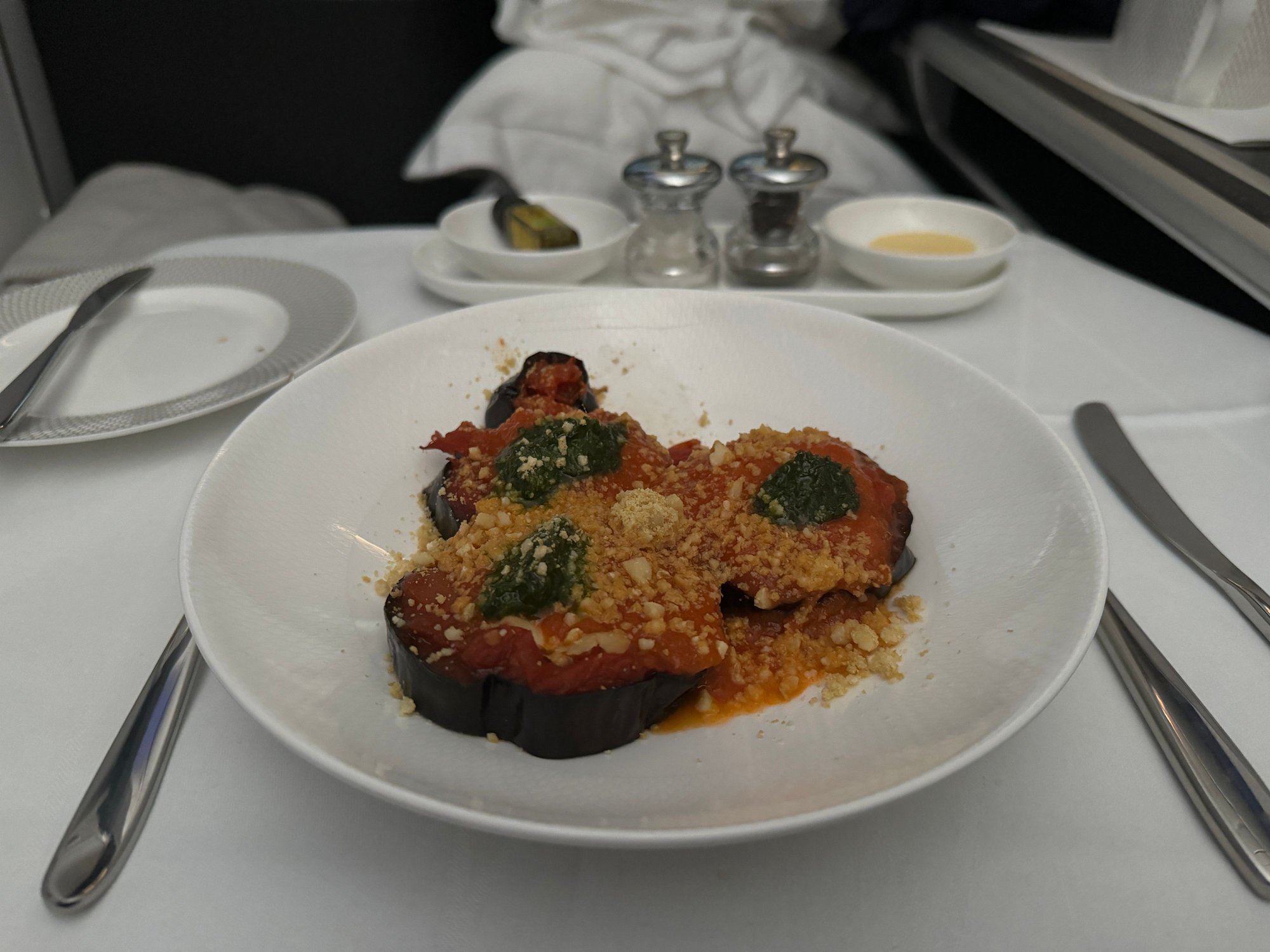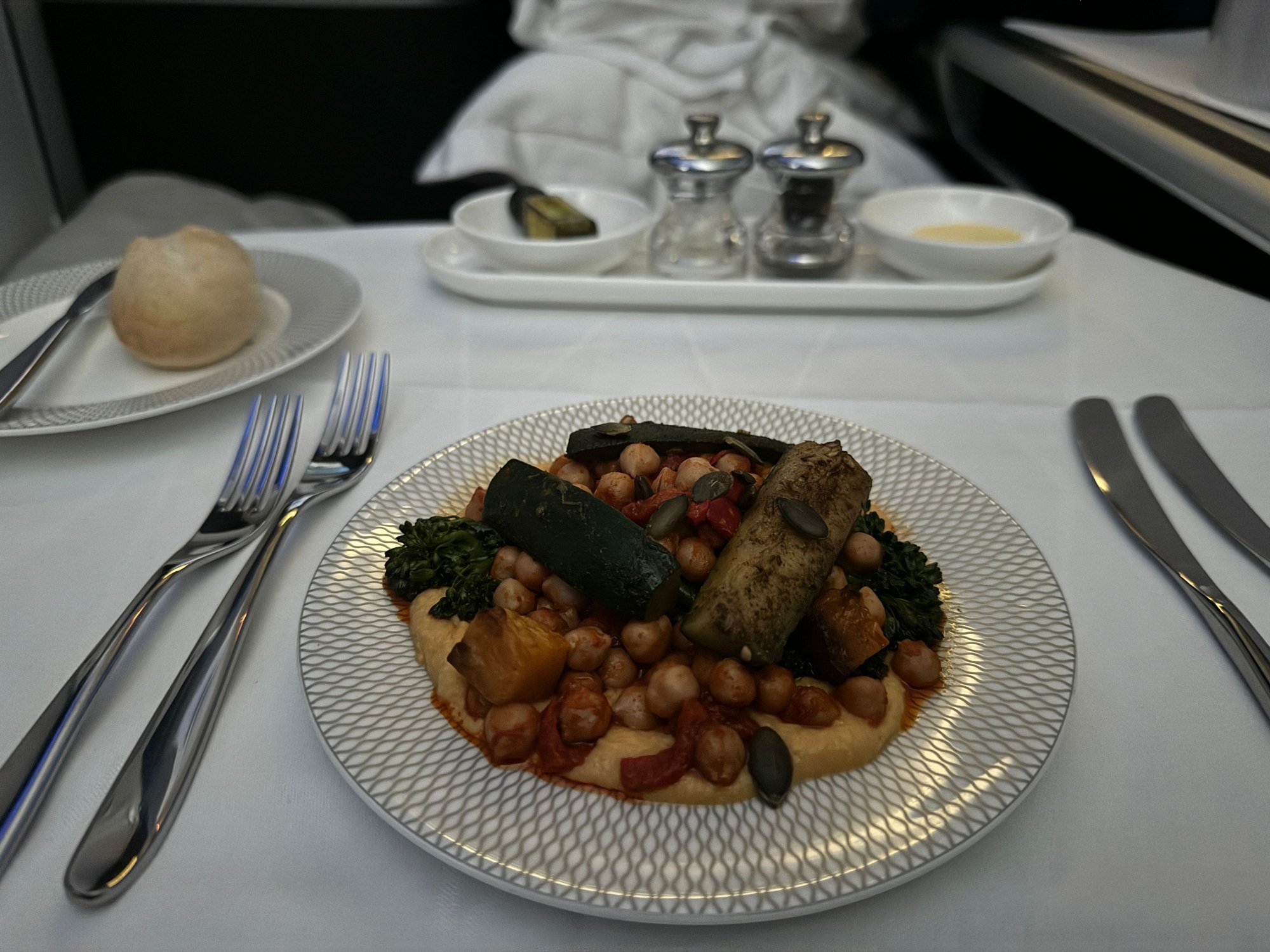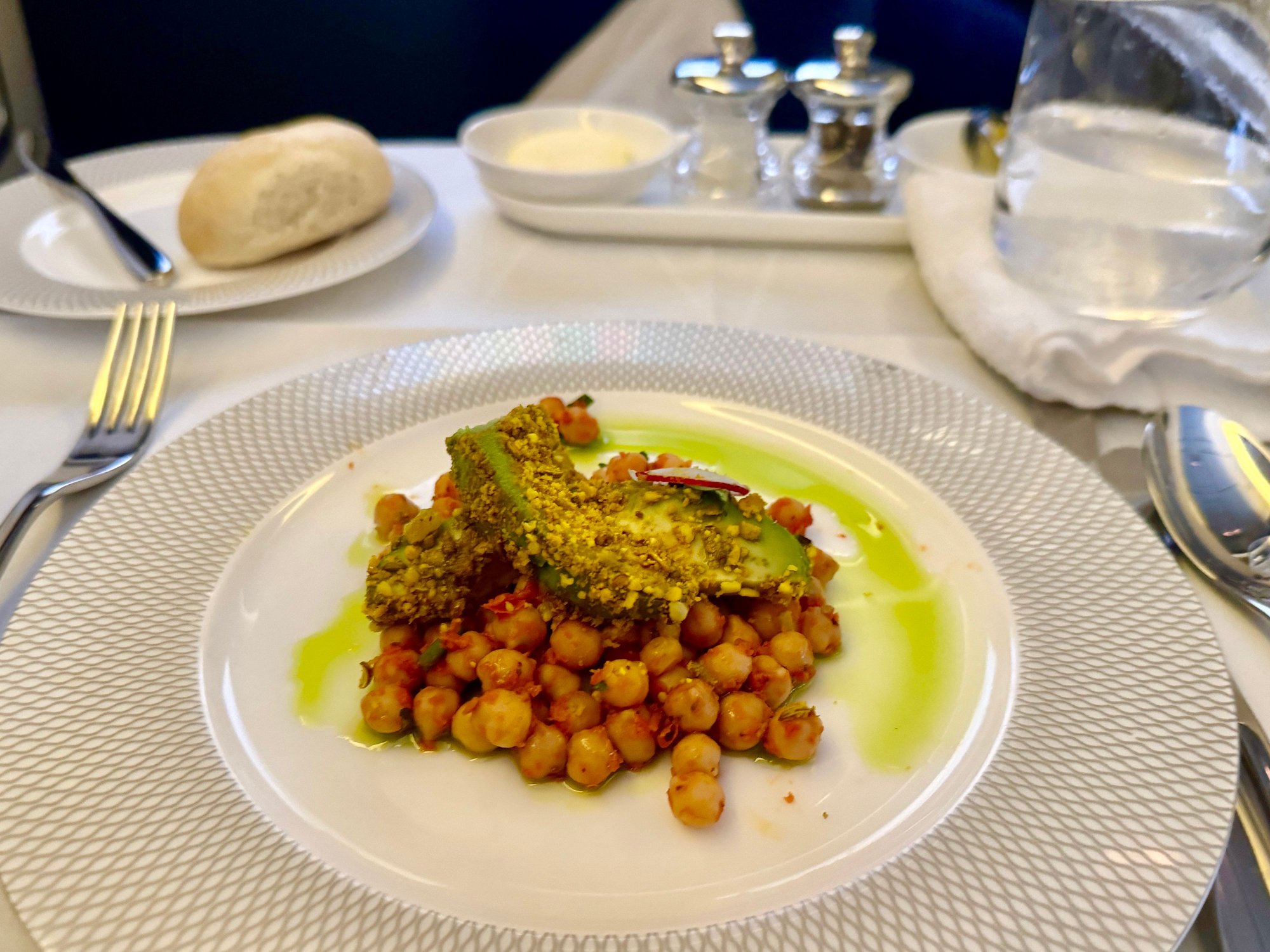 Chickpeas and avocado starter on F out of LHR. My absolute favorite of all the meals on BA