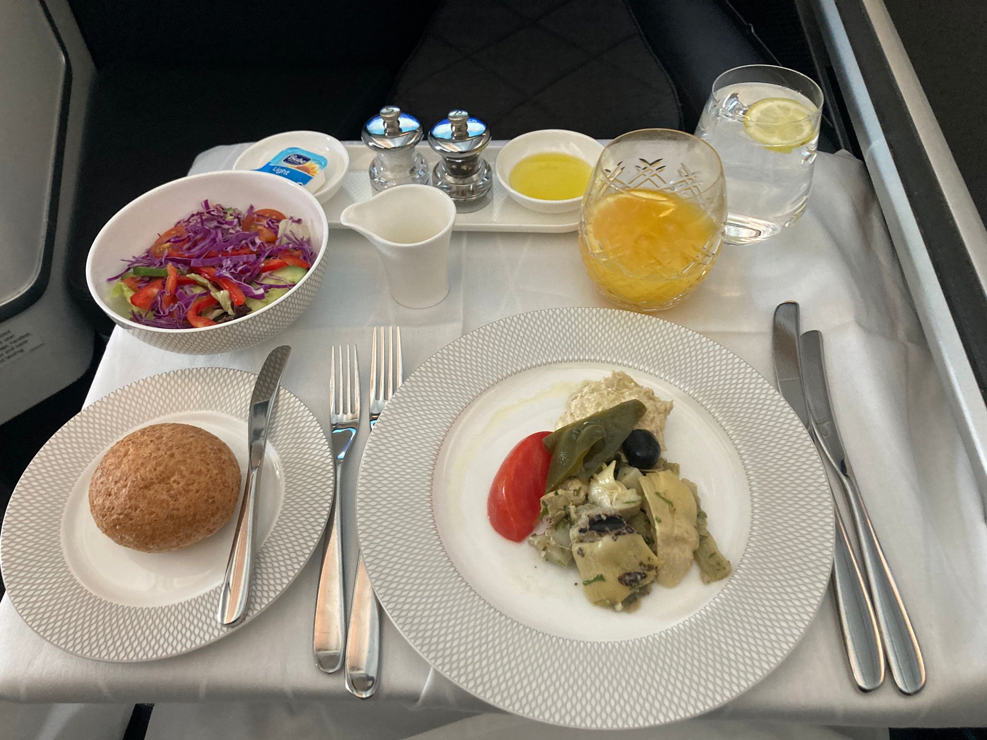 Then I was absolutely flummoxed to be offered a vegan cheese platter? I have NEVER had this before and loved in particular that the cheese was manufactured in U.K., shipped to UAE and only then will I get it on a BA flight. It had a similar texture to Violife and was cheddary.