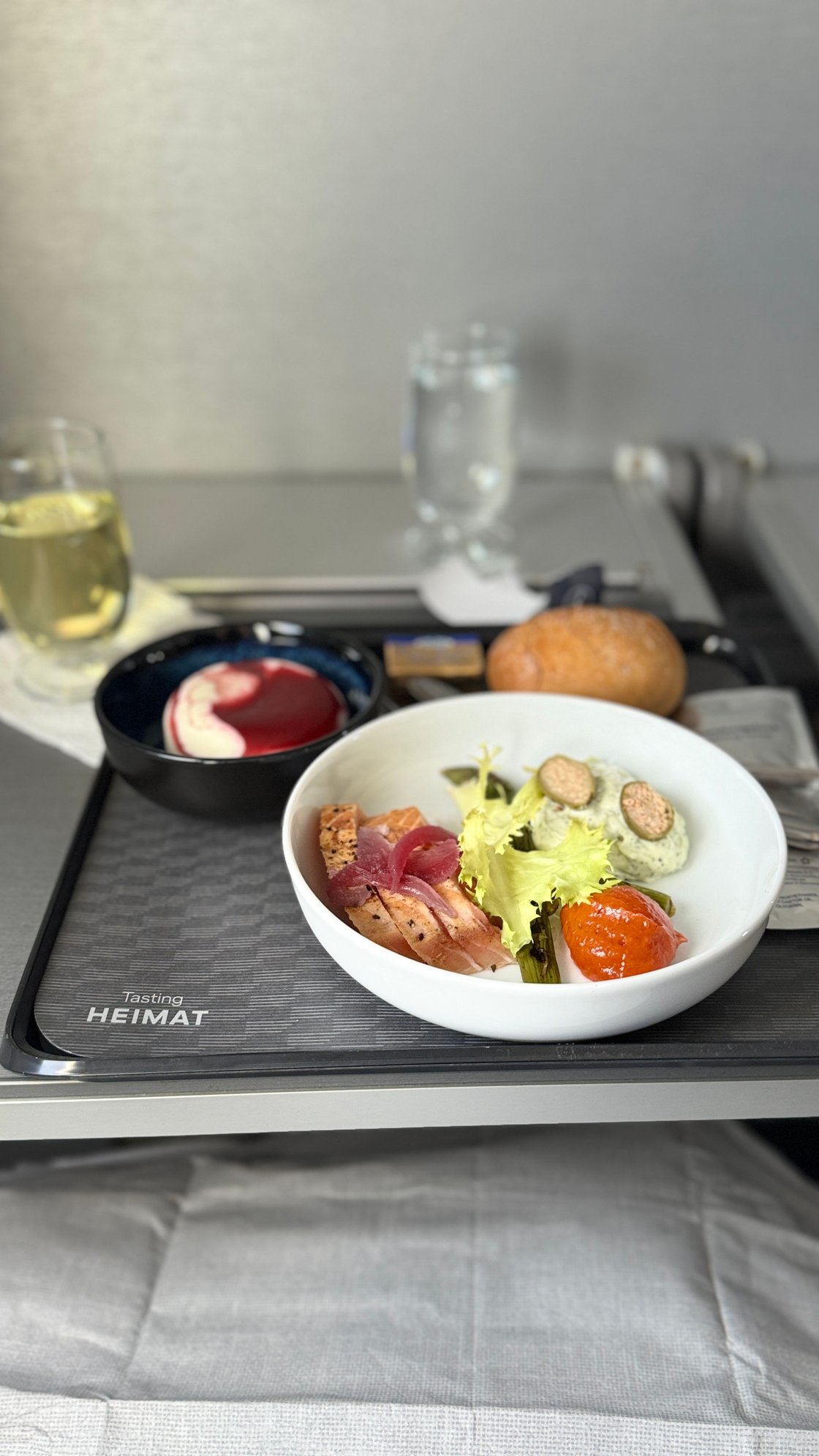 This was the meal. Just like AF only one option and cold. Some salmon with spreads. The dessert was nice.