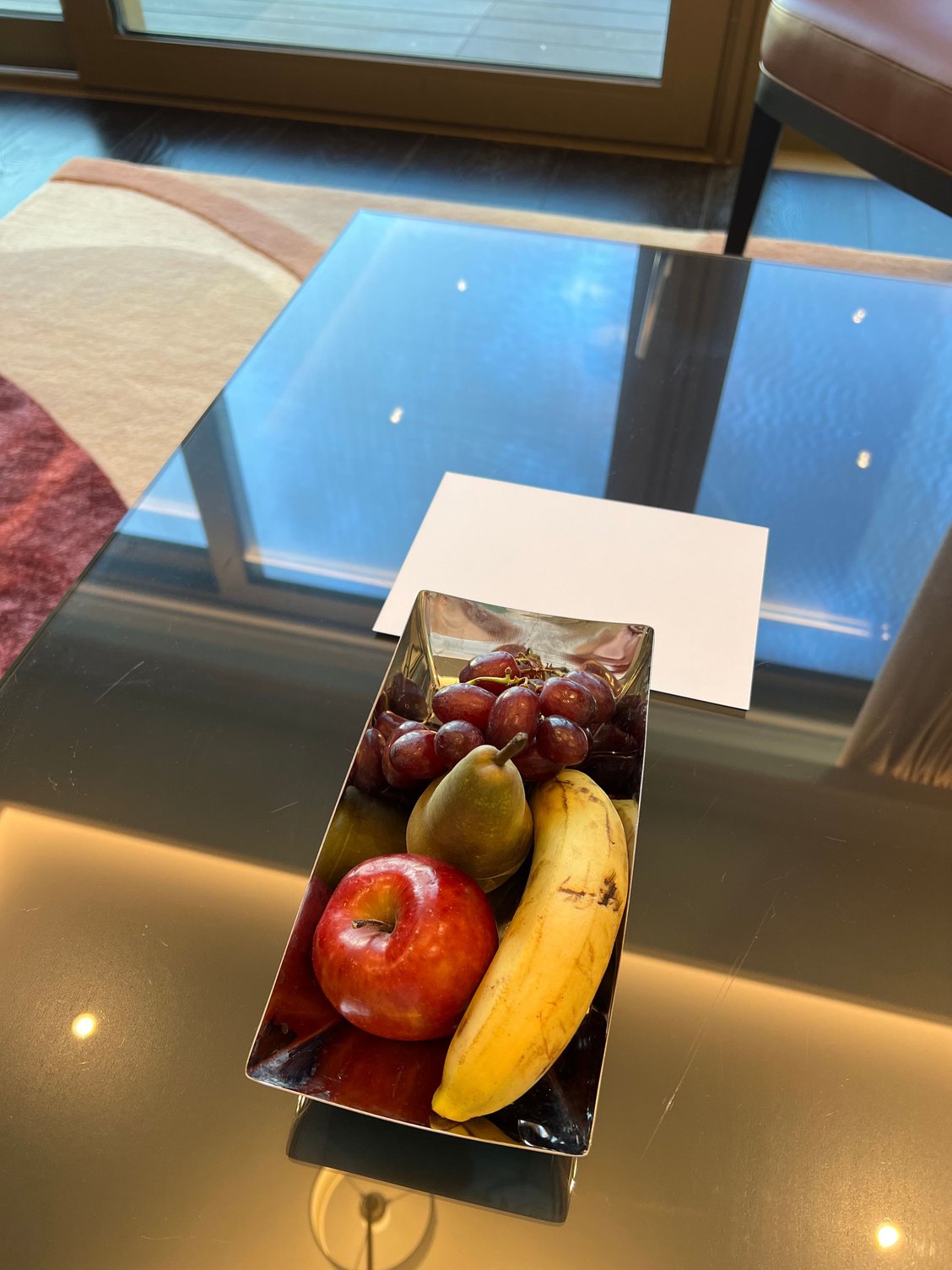 A bowl of somewhat-old-looking fruit at Hyatt Regency London Albert Embankment