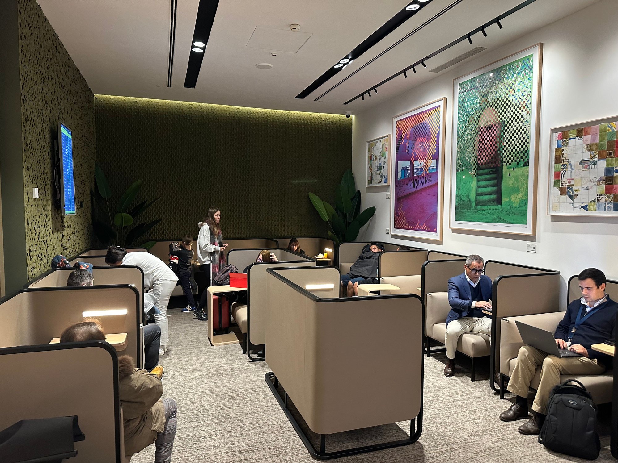 - Seats for working are much better than the Schengen lounge: bigger, big work desk, power