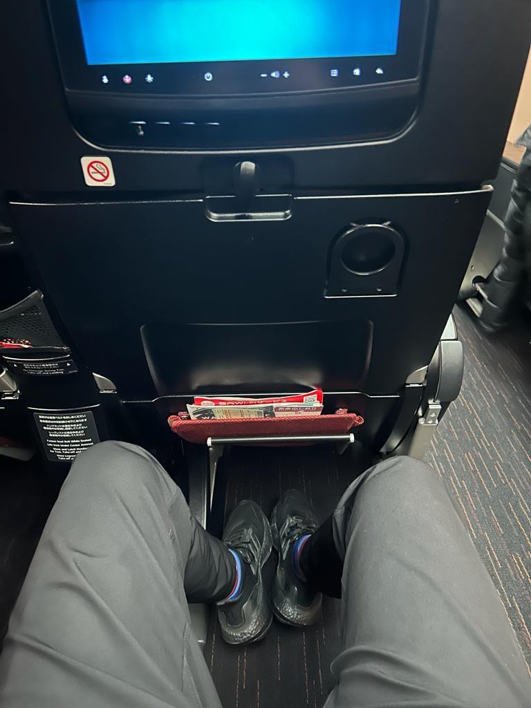 My photos are rubbish but there's plenty of reviews online. It's a shell type seat which reclines to a good angle, legroom and width is good (being 190cm and 90kg). Better than the regional J seats at MAS. Food onboard was the standard Y offering but fortunately the JAL First Class lounge in Haneda is fantastic.